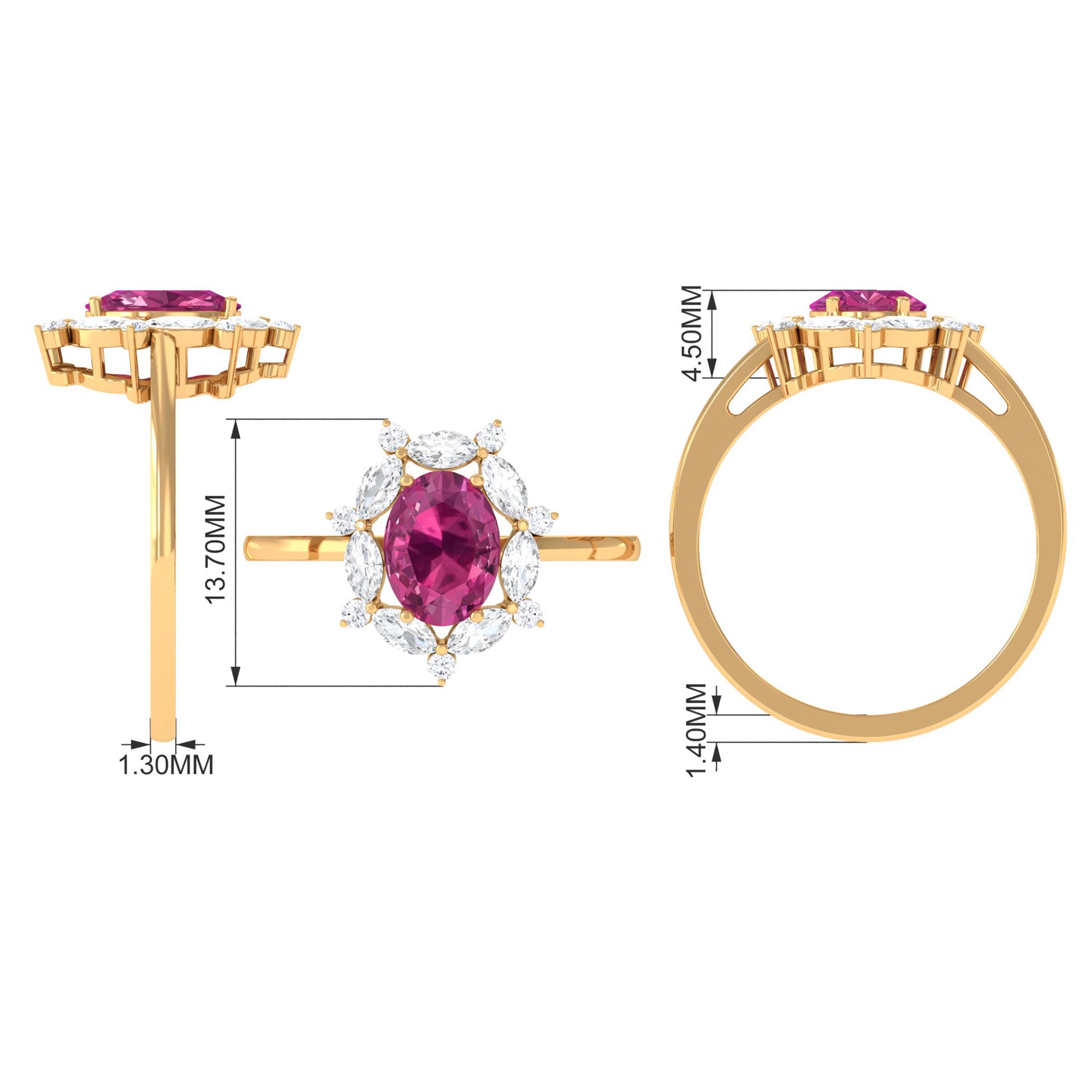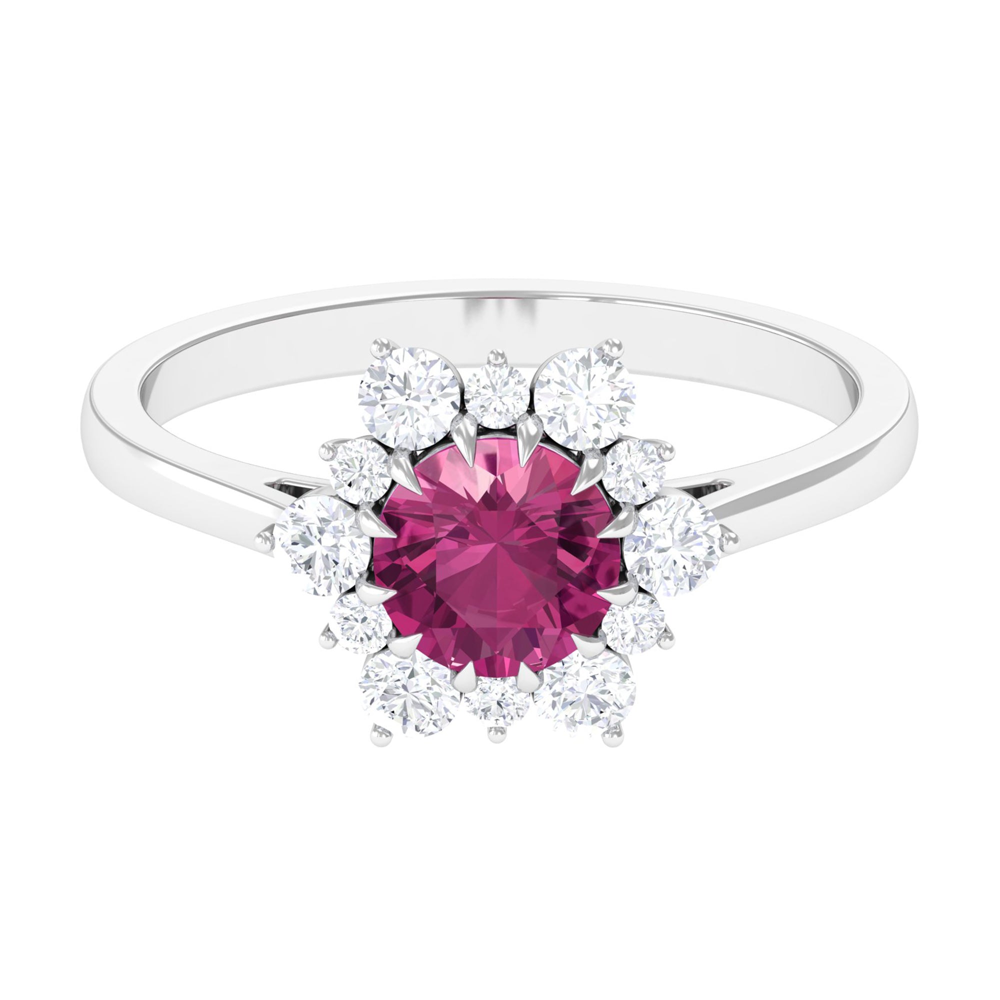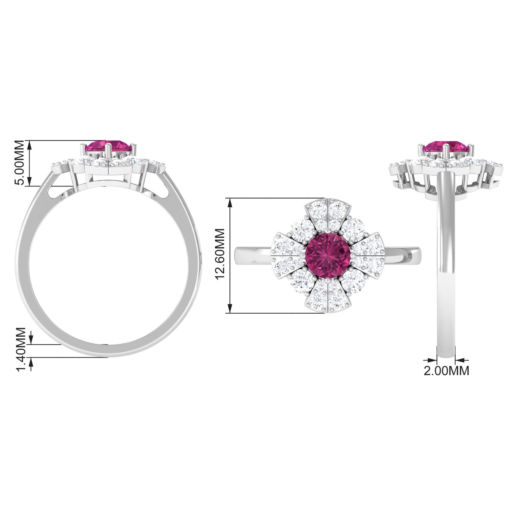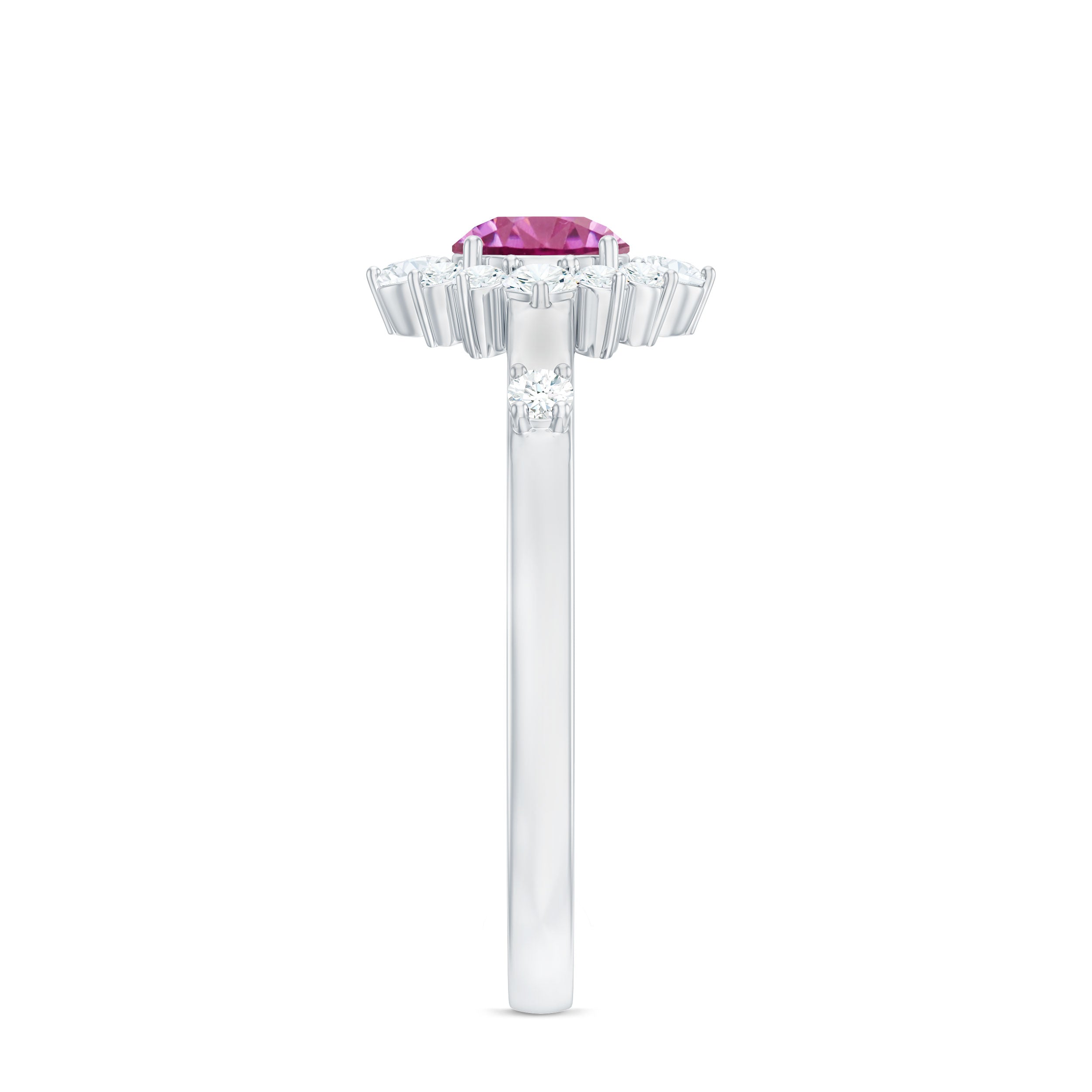 Lending the Classic Solitaire Style more visual appeal, Halo encircles the Centerpiece of Pink Tourmaline with a shimmering row of petite Diamond/Moissanite. As a result, the Pink Tourmaline not only oozes more personality, but its delicate beauty is emphasized since the Halo gives off the illusion of a larger size. Owing to its romantic hue and enhanced brilliance, it makes for one of the most Unique Pink Tourmaline Engagement Rings out there!