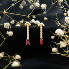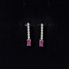 Emerald Cut Ruby and Diamond Dangle Drop Earrings