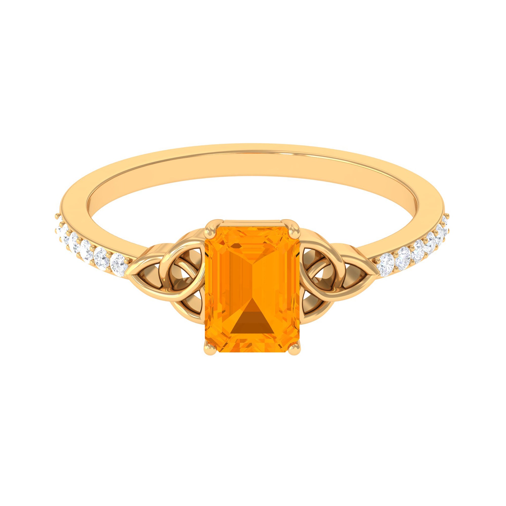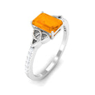 Shine like a star in our Celtic Knot Engagement Ring featuring Emerald Cut Fire Opal in Prong Setting with Round Shape Diamond for an appealing and enchanting look. This Fire Opal Solitaire Ring is adorned in Gold and is the perfect excuse for you to spoil your favorite woman.