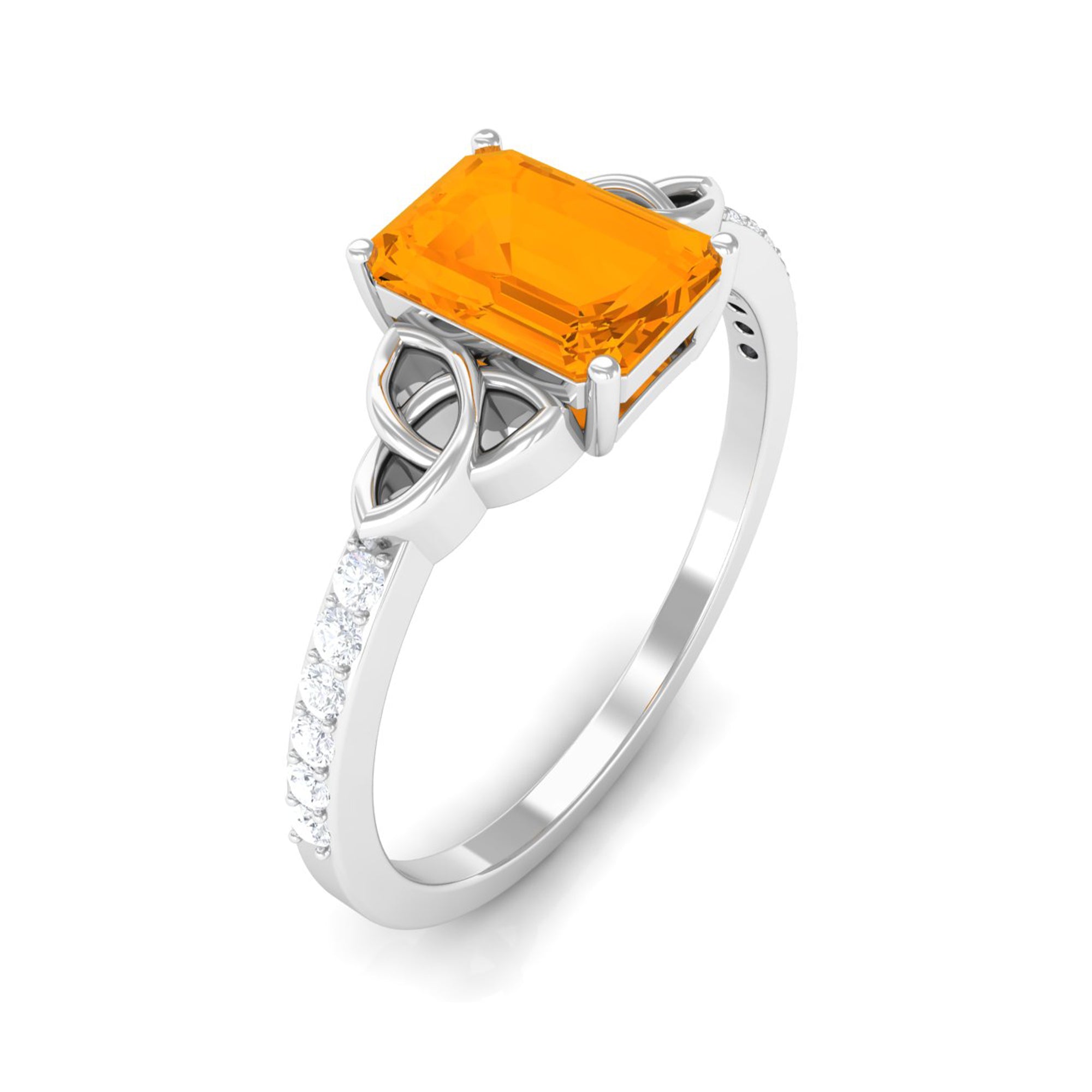 Emerald Cut Solitaire Fire Opal Celtic Knot Engagement Ring with Diamond