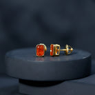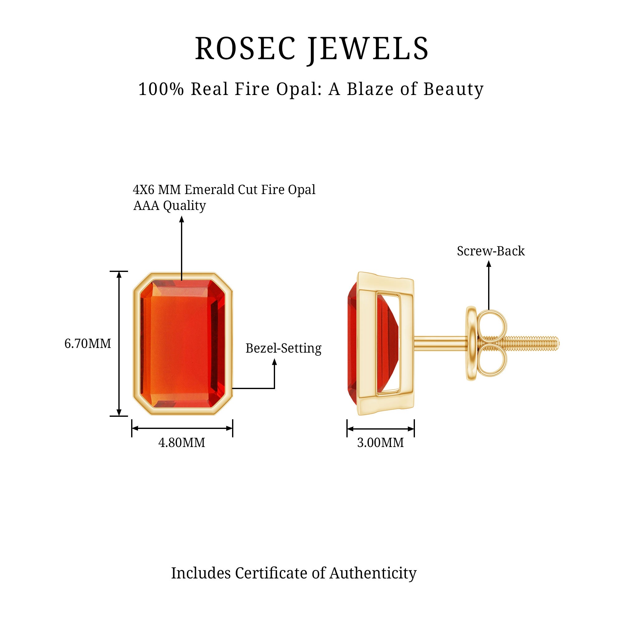 Emerald Cut Stud Earrings with Bezel Set Fire Opal