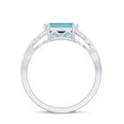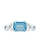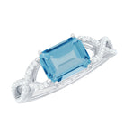 Emerald Cut Swiss Blue Topaz East-West Crossover Ring with Diamond