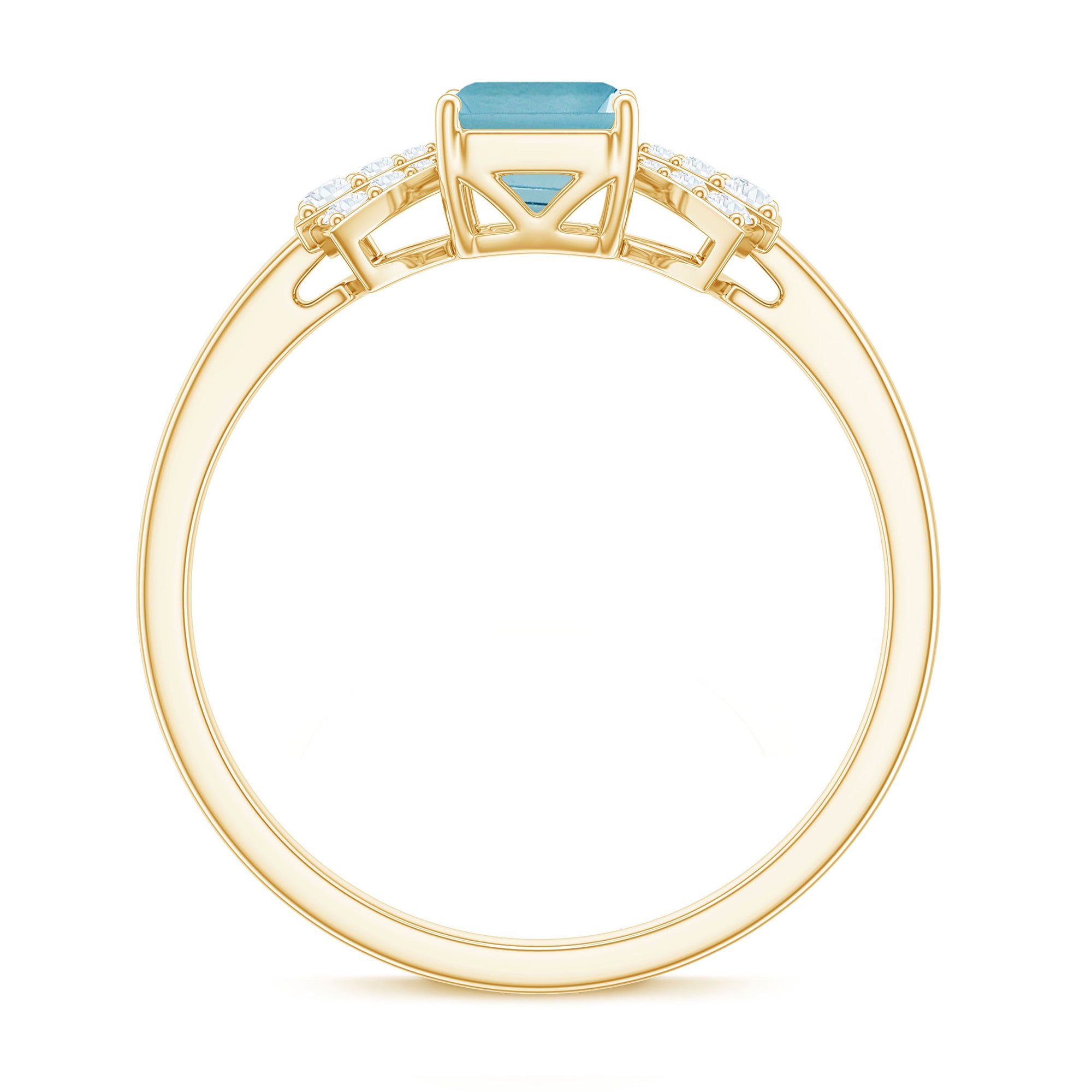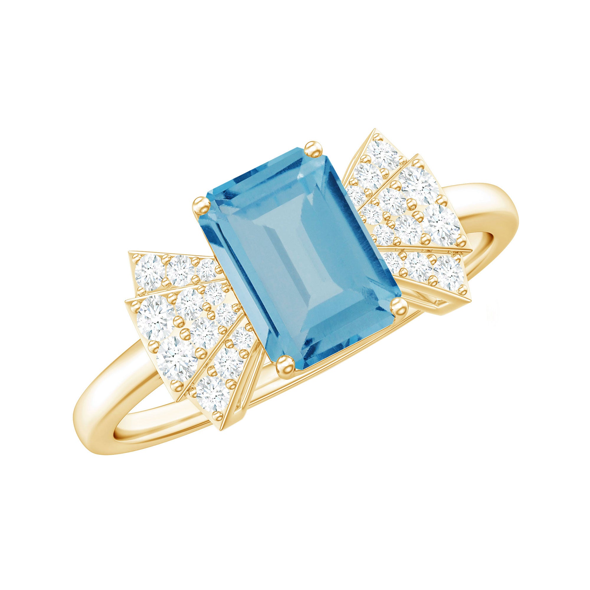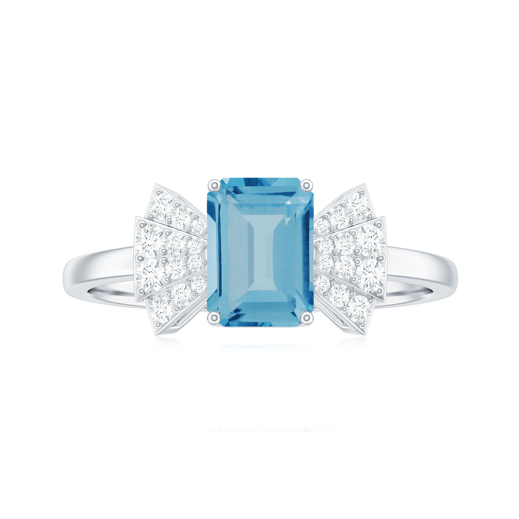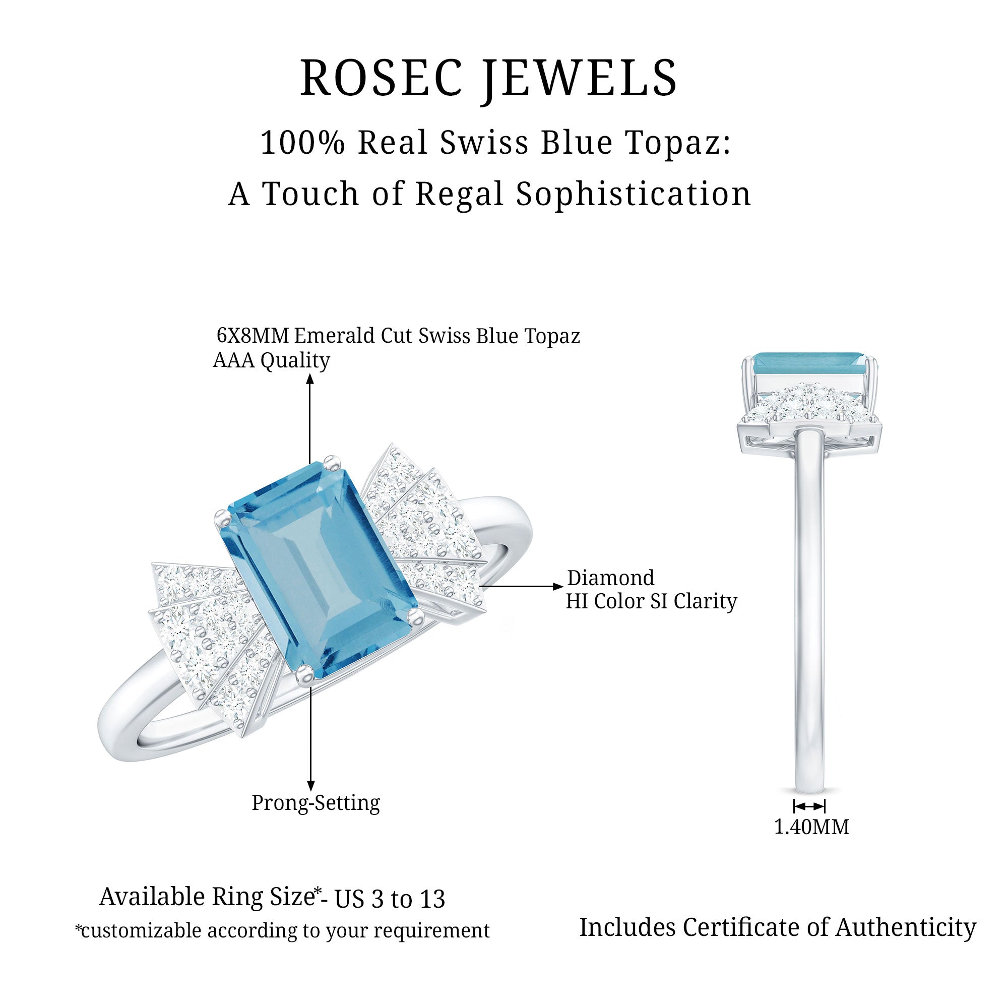 Emerald Cut Swiss Blue Topaz Solitaire Ring with Diamond