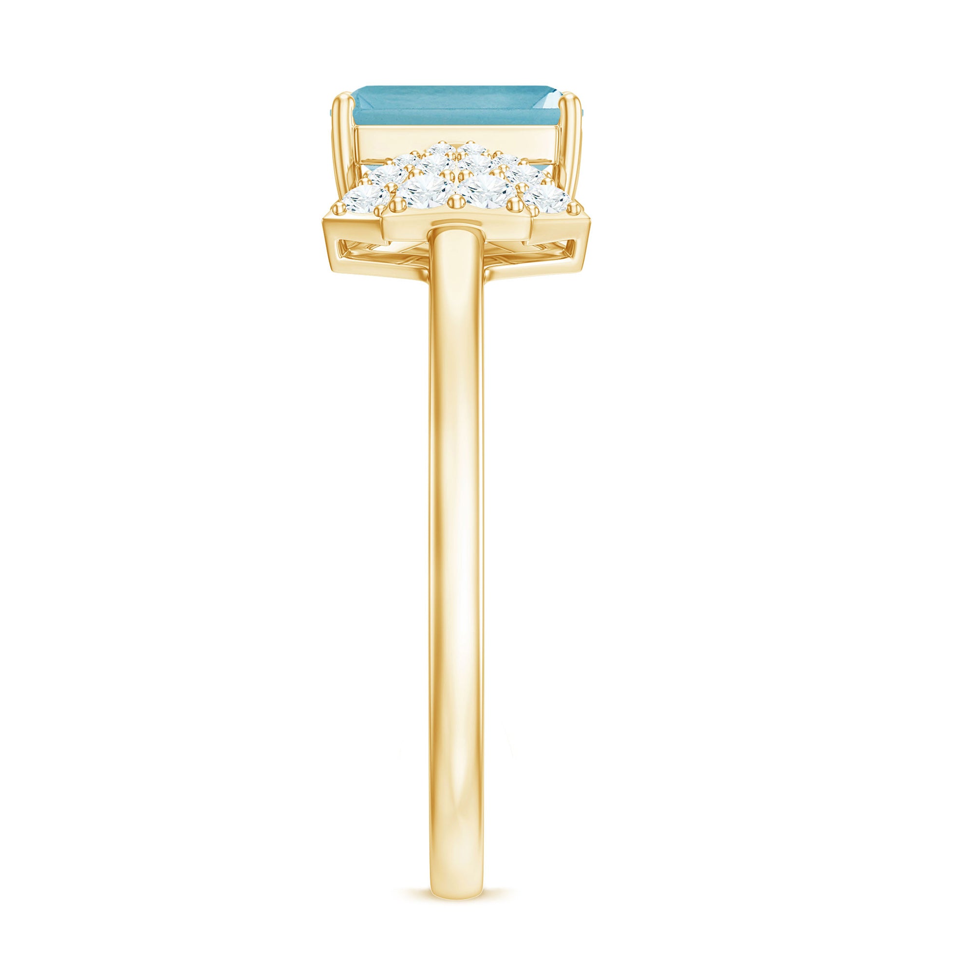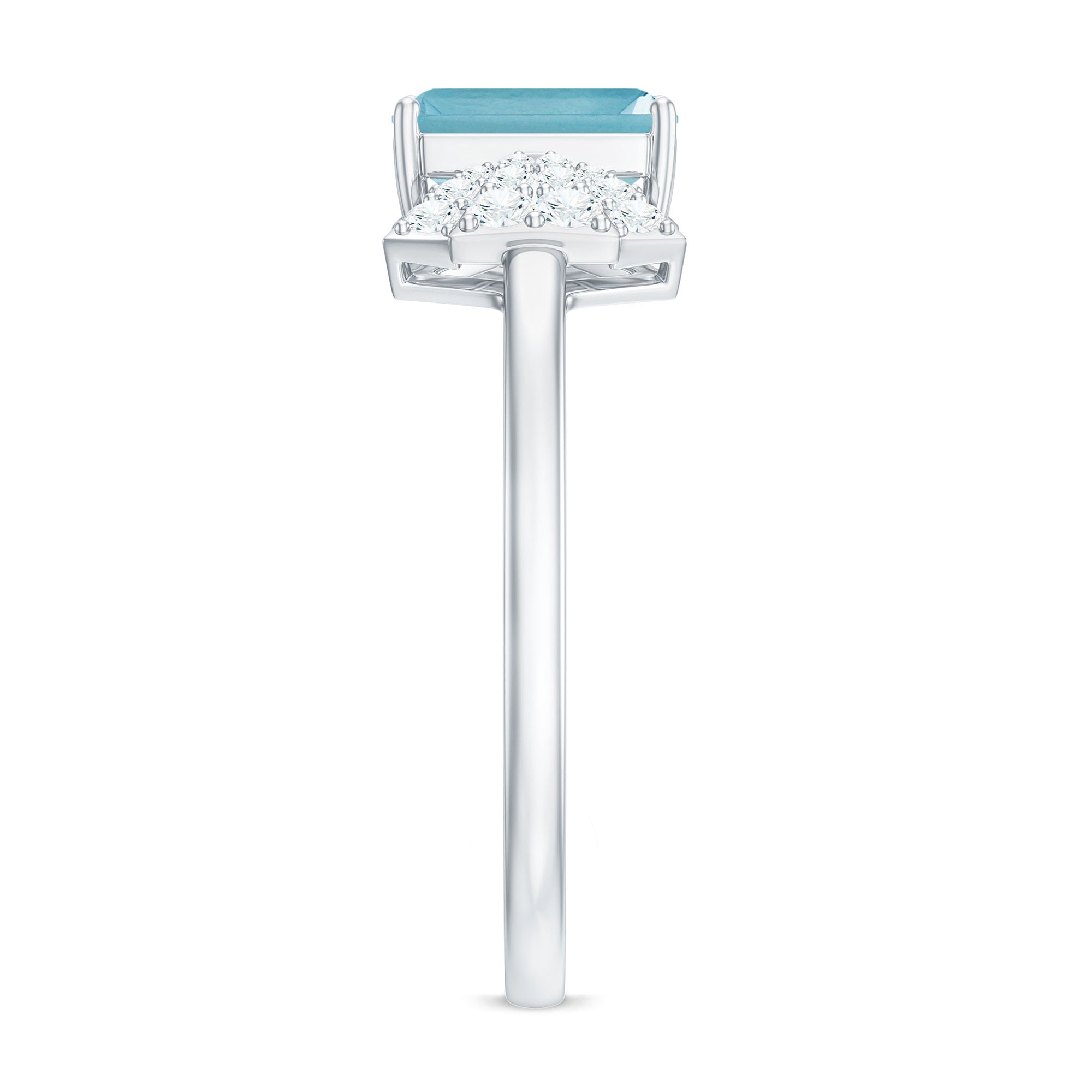 Experience the allure of this Emerald Cut Swiss Blue Topaz Solitaire Ring enhanced by shimmering Diamond gemstones, a captivating symbol of elegance.