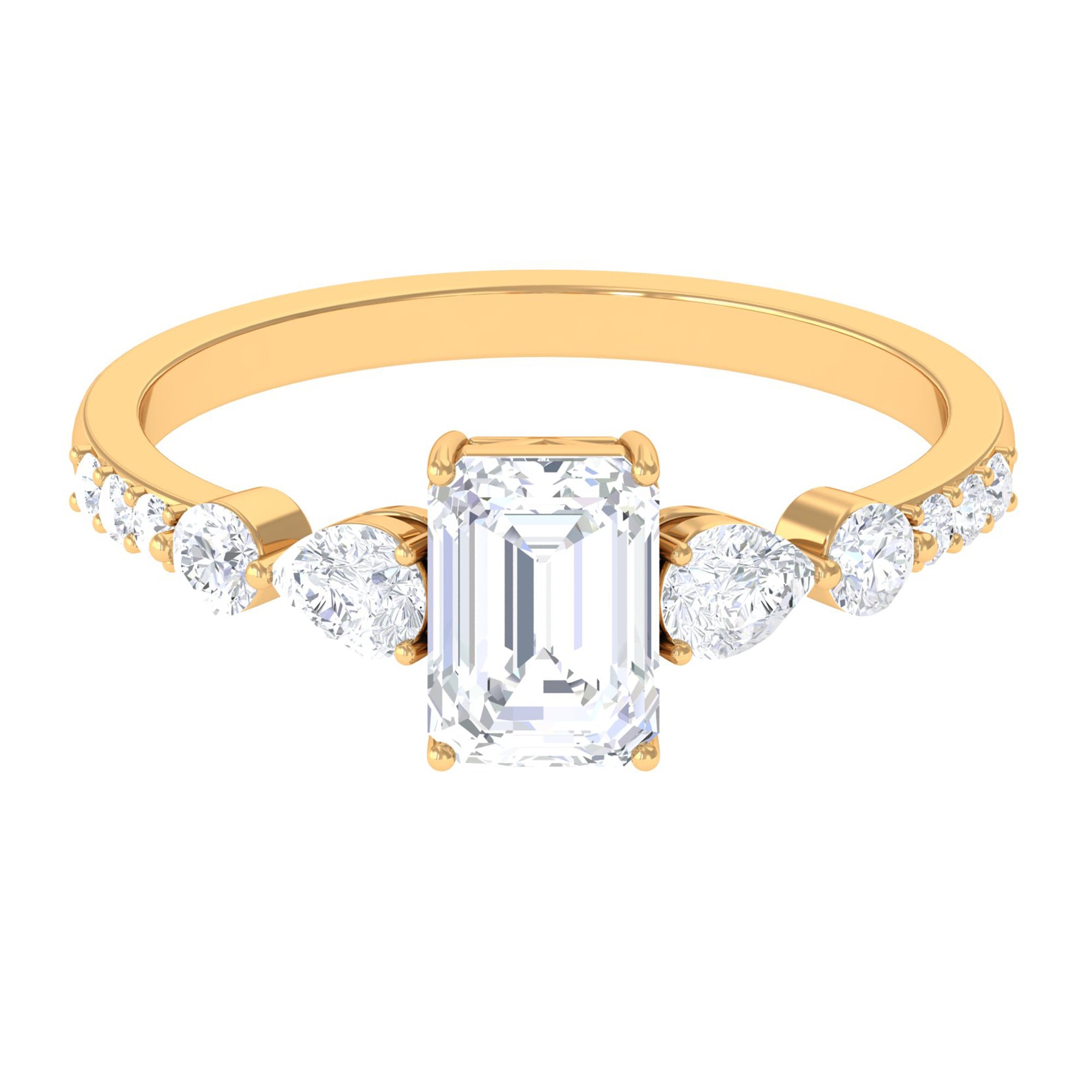 This Emerald Cut Zircon in Prong Setting with Side Stones on Solitaire Ring gives your boring outfits some amazing looks and a perfect engagement jewelry.