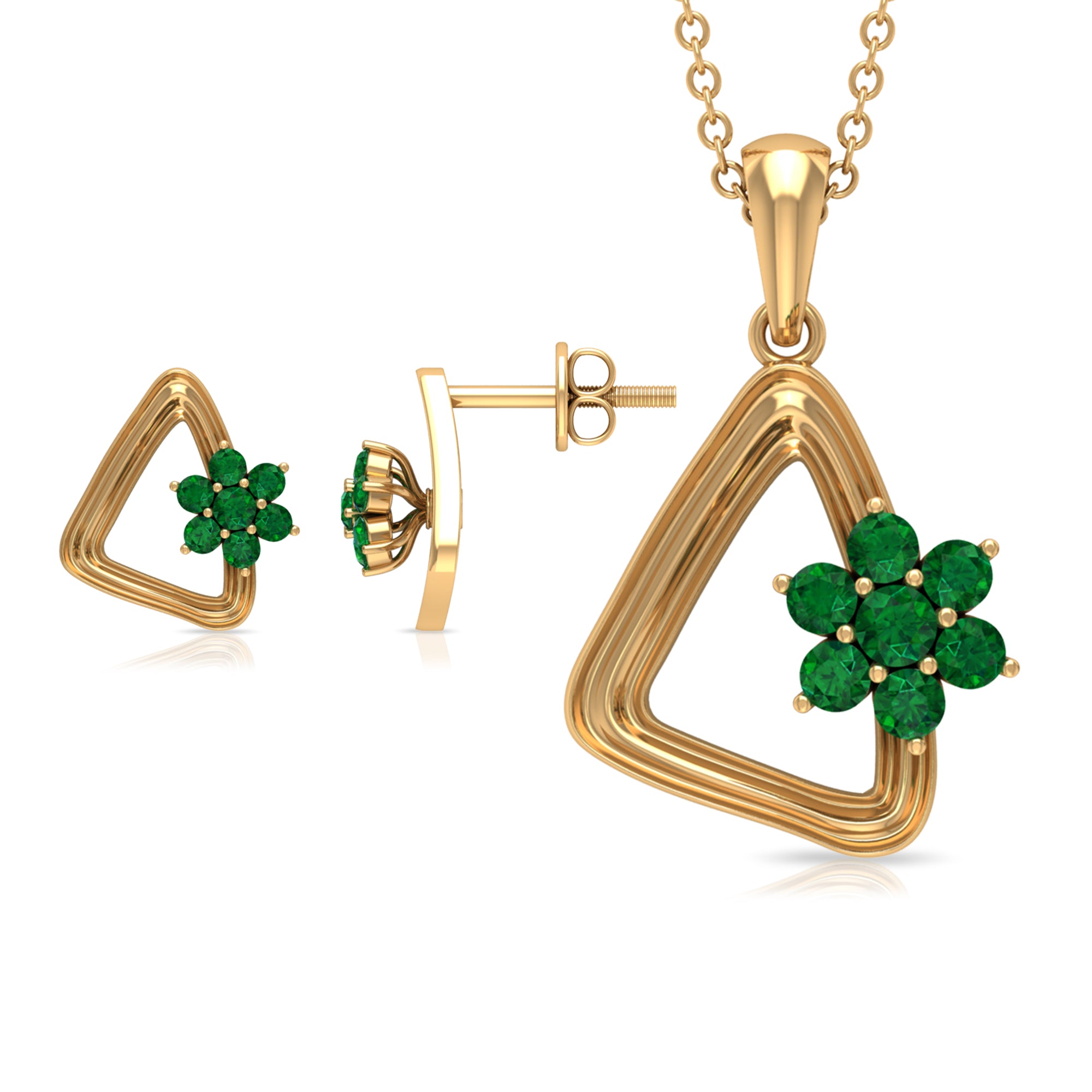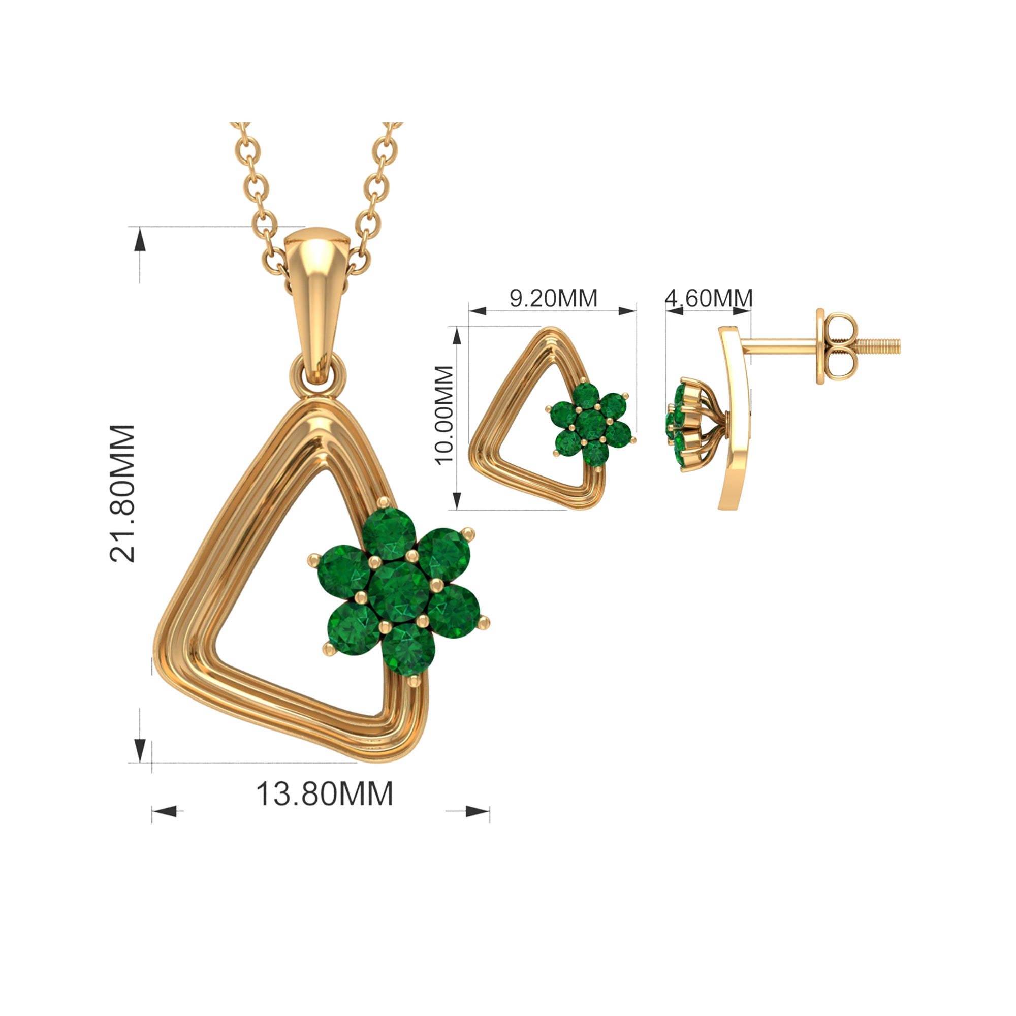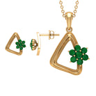 Look chic and modern in our Open Triangle Jewelry Set with an Emerald Floral design crafted in Solid Gold. This Earring and Pendant Set will give you an unique and modern look.