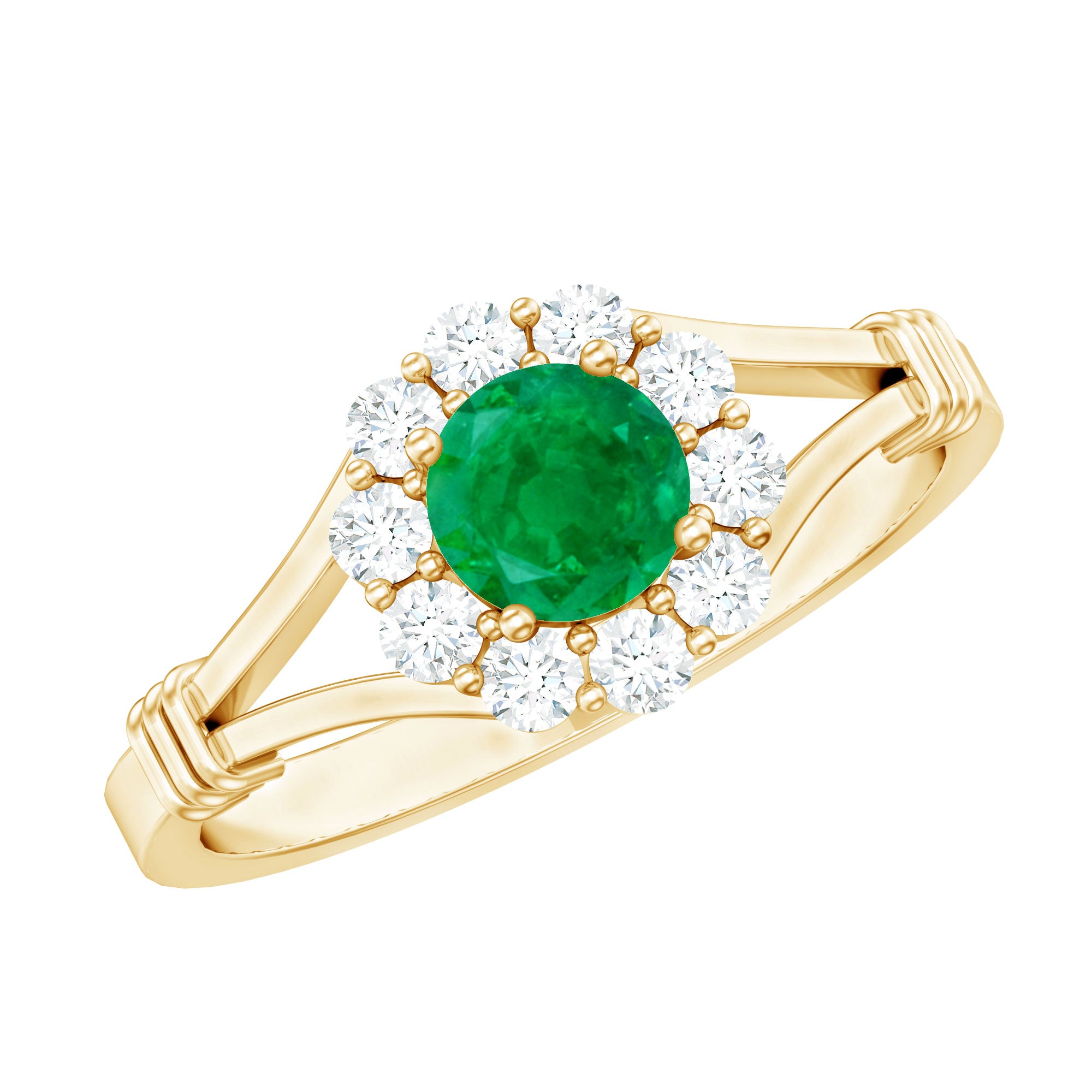 Emerald Nature Inspired Engagement Ring with Diamond Halo