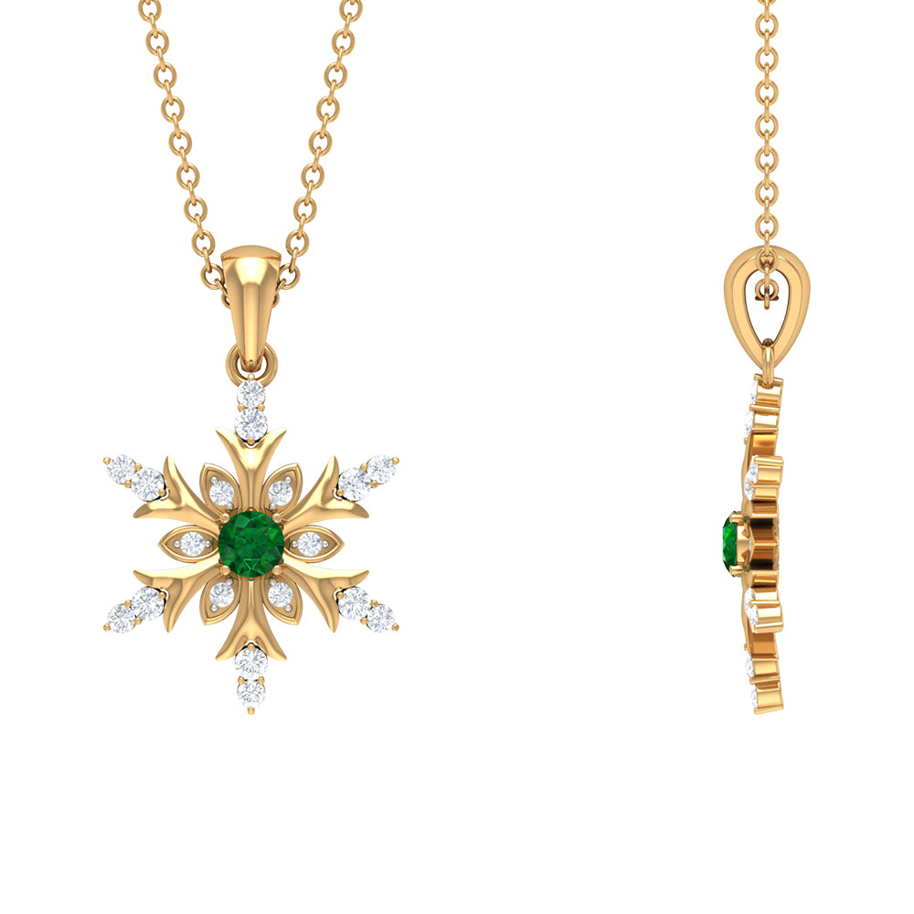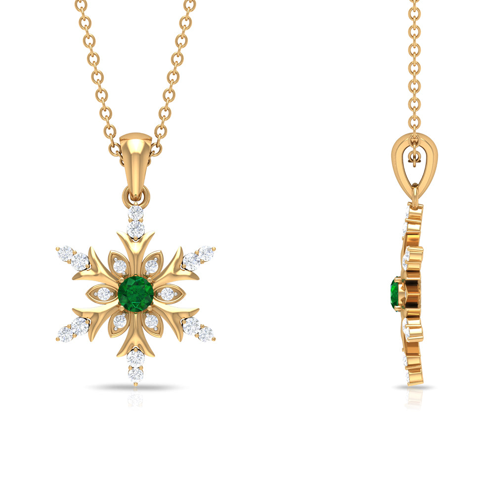 Wear something new or fashionable just like this alluring Snowflake Pendant Necklace. Decorated with Round Shape Emerald and Diamonds studded on the snowflake design. This Pendant Necklace will complement her casual or special looks. Surprise your favorite person by presenting this Emerald Necklace at the birthday party and wait for her priceless reaction.