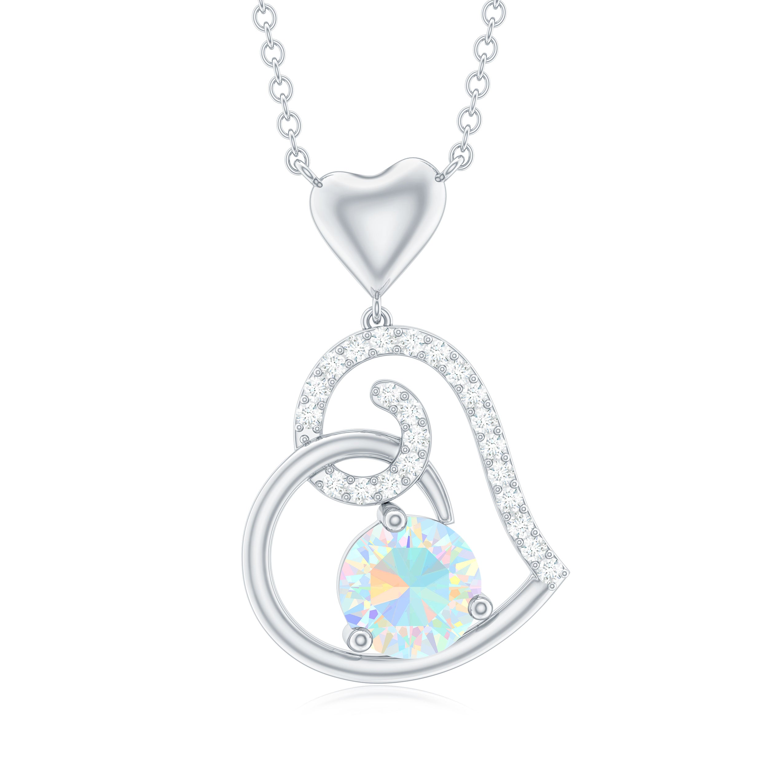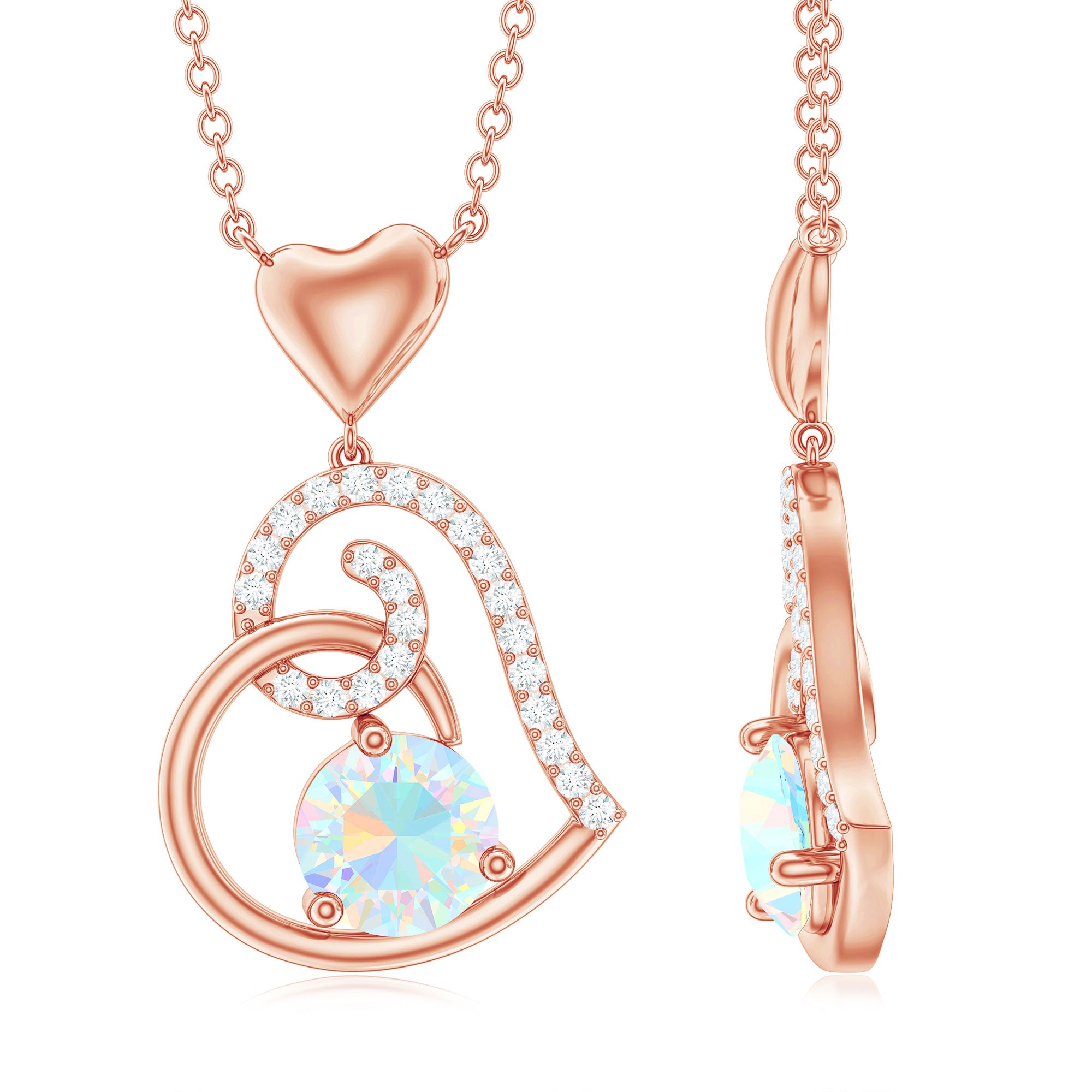 Ethiopian Opal Heart Pendant Necklace with Diamond