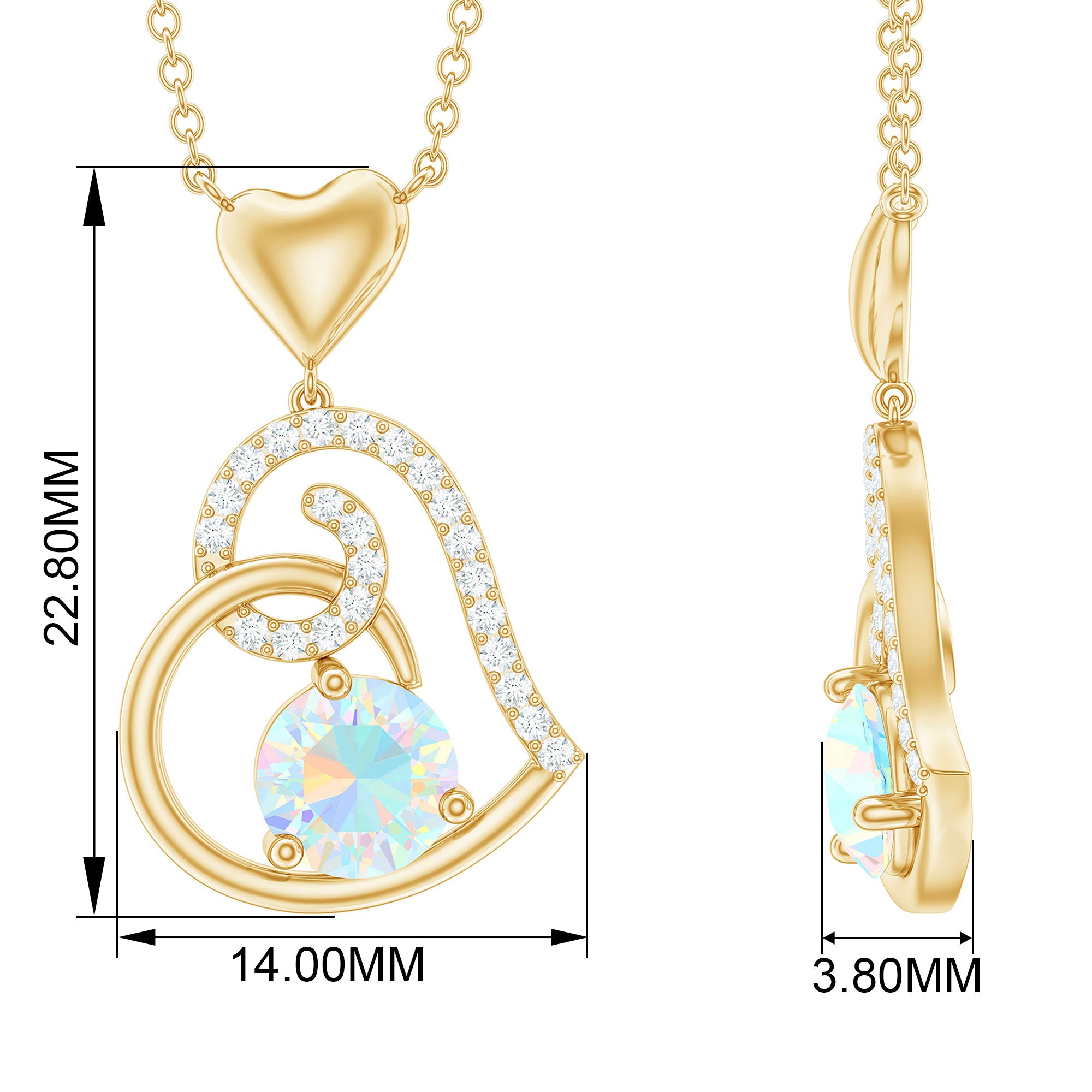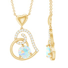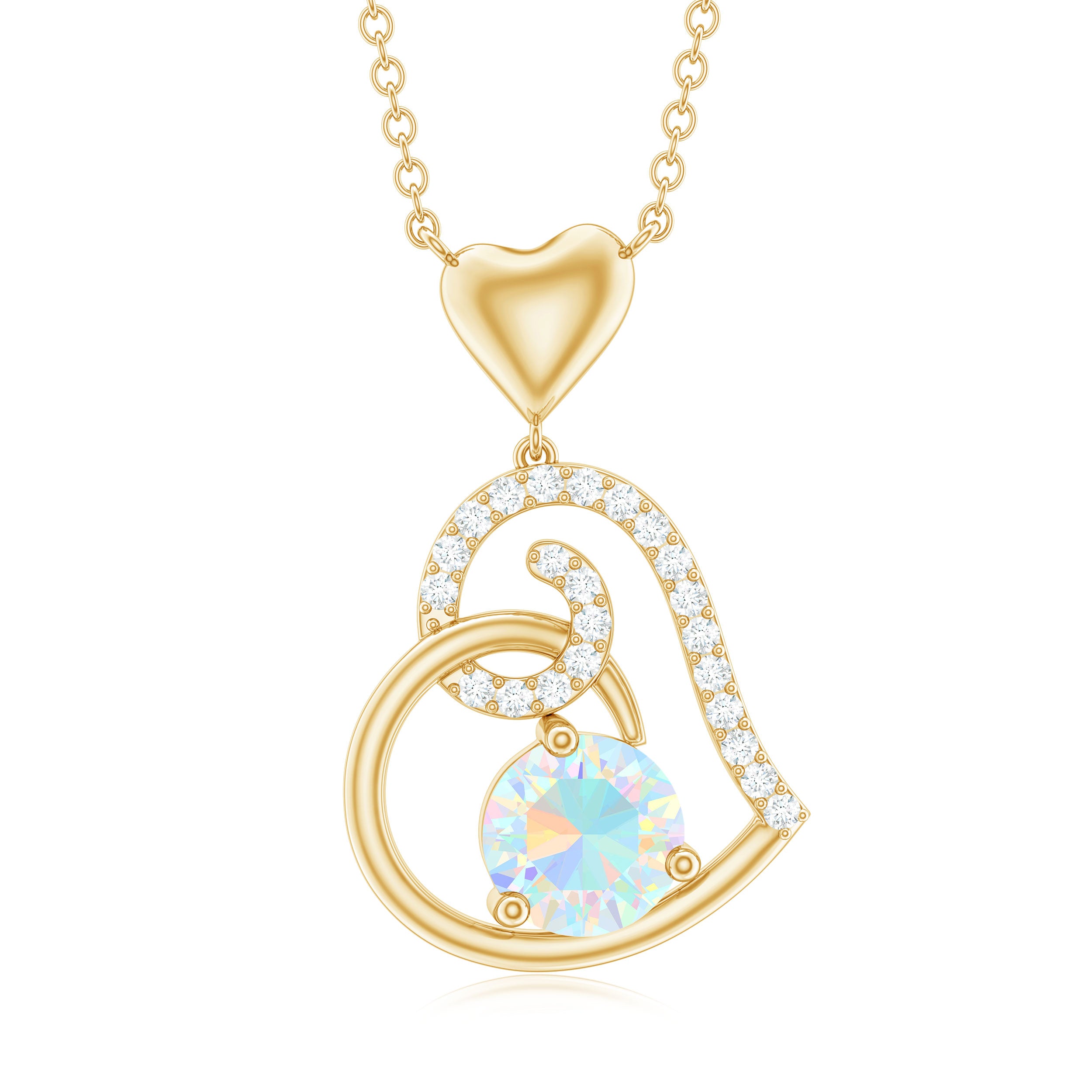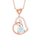 Be Dazzle with these beautiful Heart Pendant Necklace is embellished with Round Shape Ethiopian Opal as Solitaire in 3 Prong Setting and Round Shape Diamond in Prong Setting, Crafted in Solid Gold.