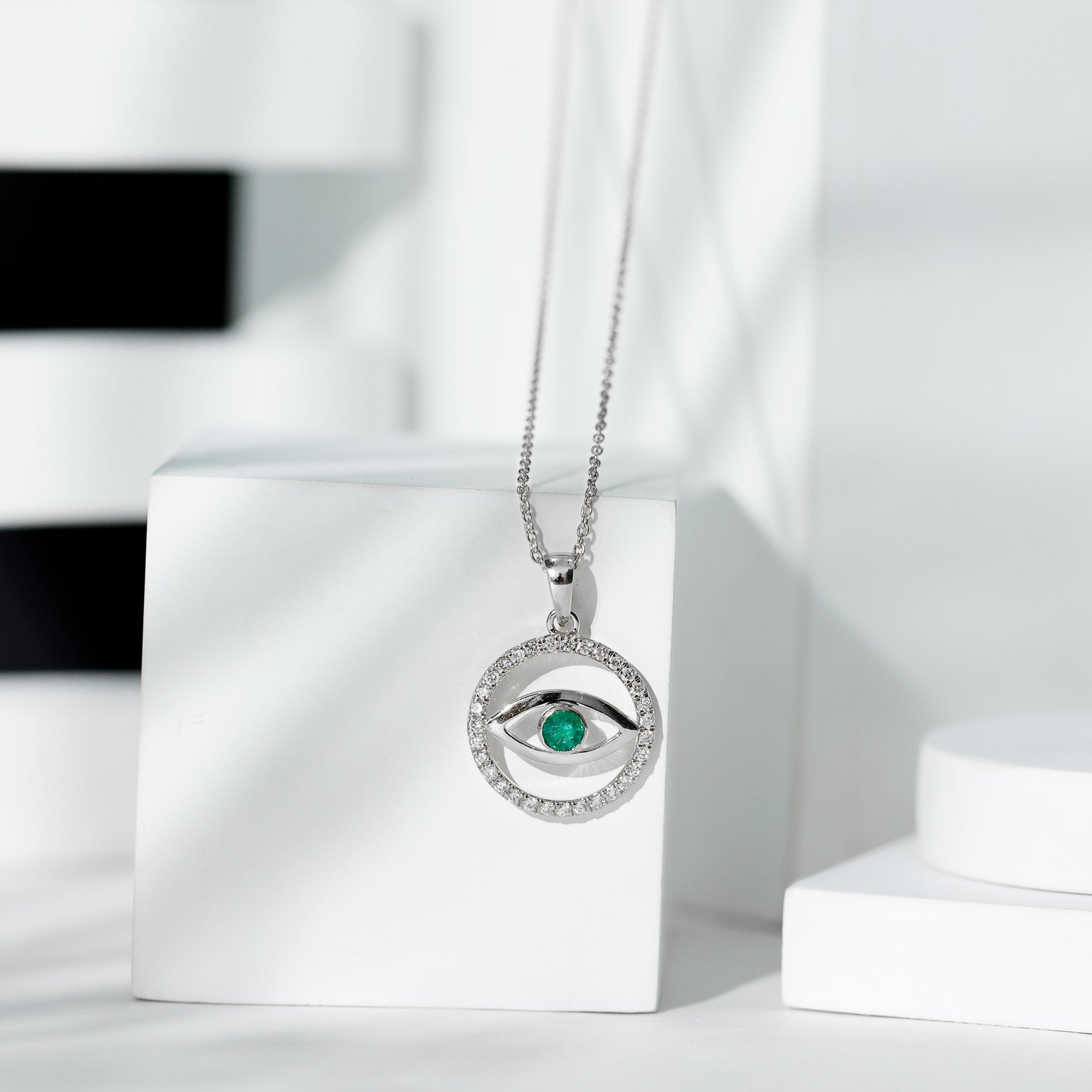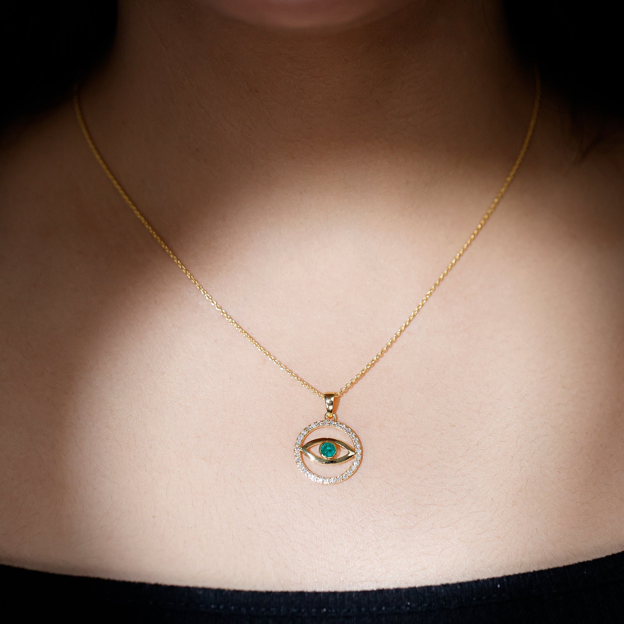 Evil Eye Pendant Necklace with Emerald and Diamond