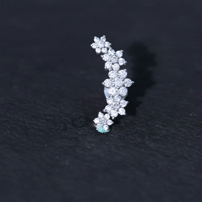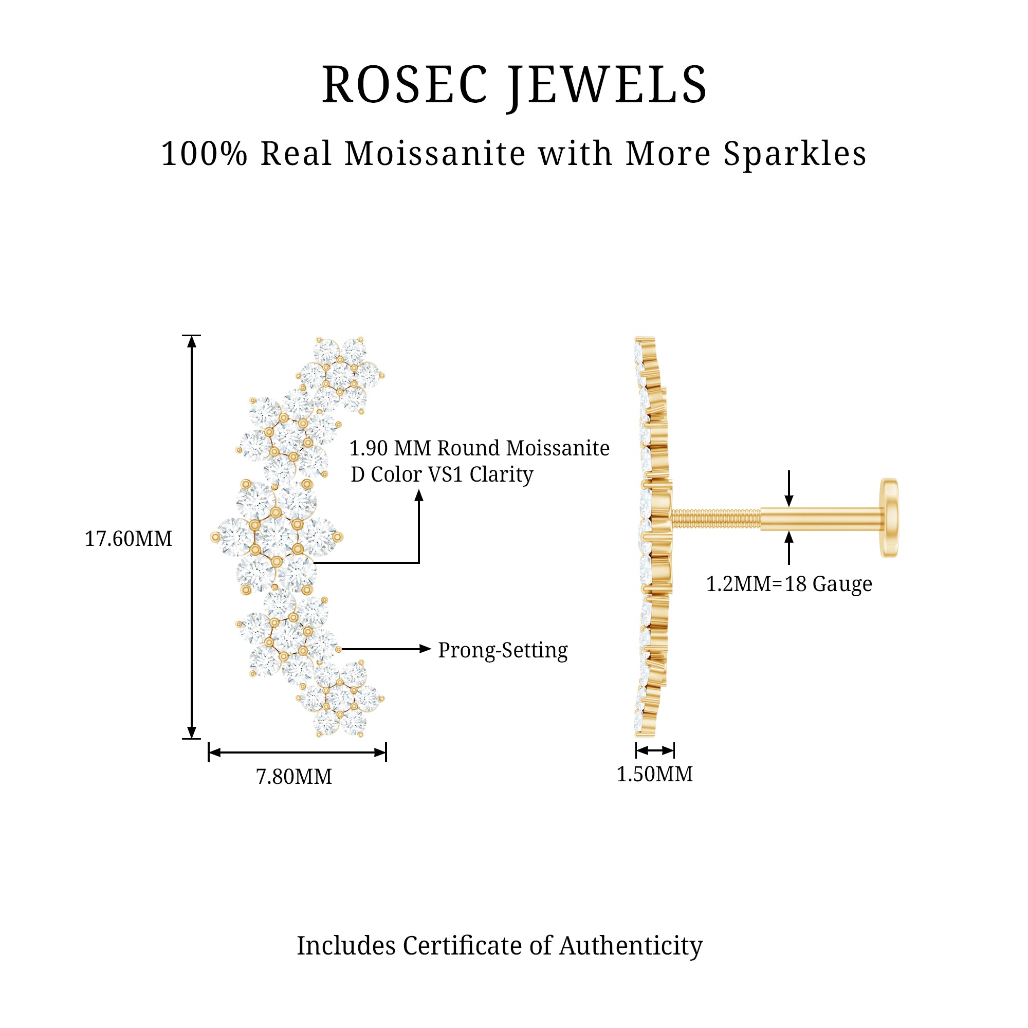 Make a stunning fashion statement with our mesmerizing Crawler Earring featuring a beautiful floral design adorned with Round Cut Moissanite in Prong Setting. This Flower Earring is delicately crafted from Metal, giving this a shiny appearance and making this earring suitable for Cartilage, Helix, or Upper Lobe Piercings. Flaunt this Climber Earring with your special attire and raise your fashion bar high in the sky.