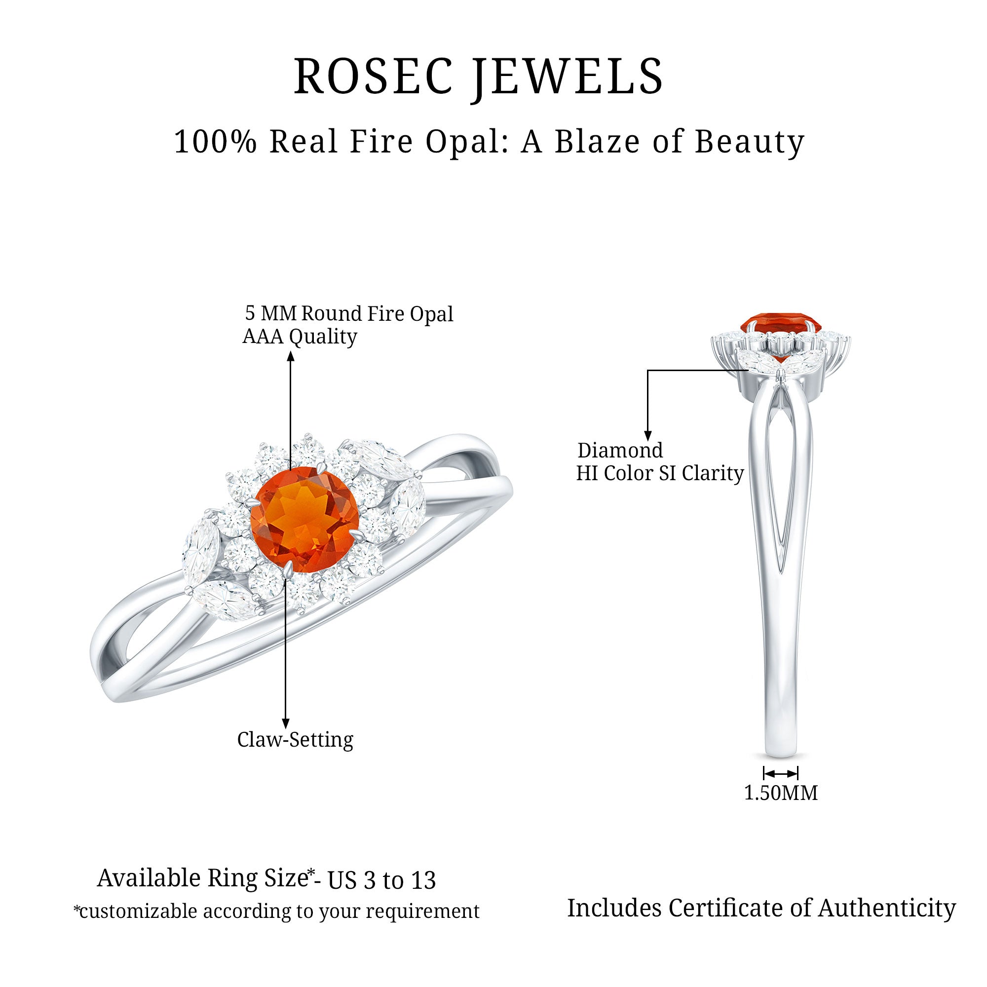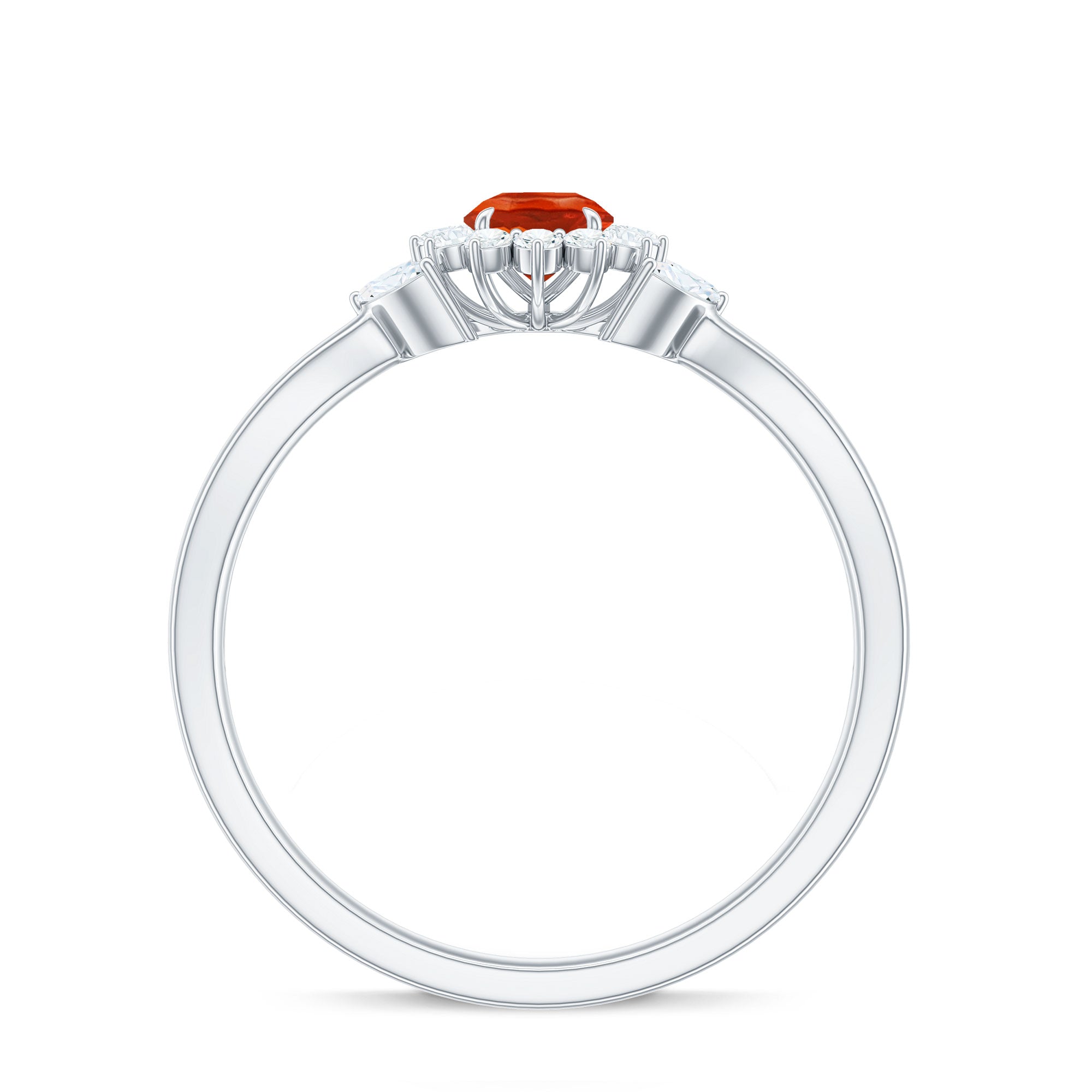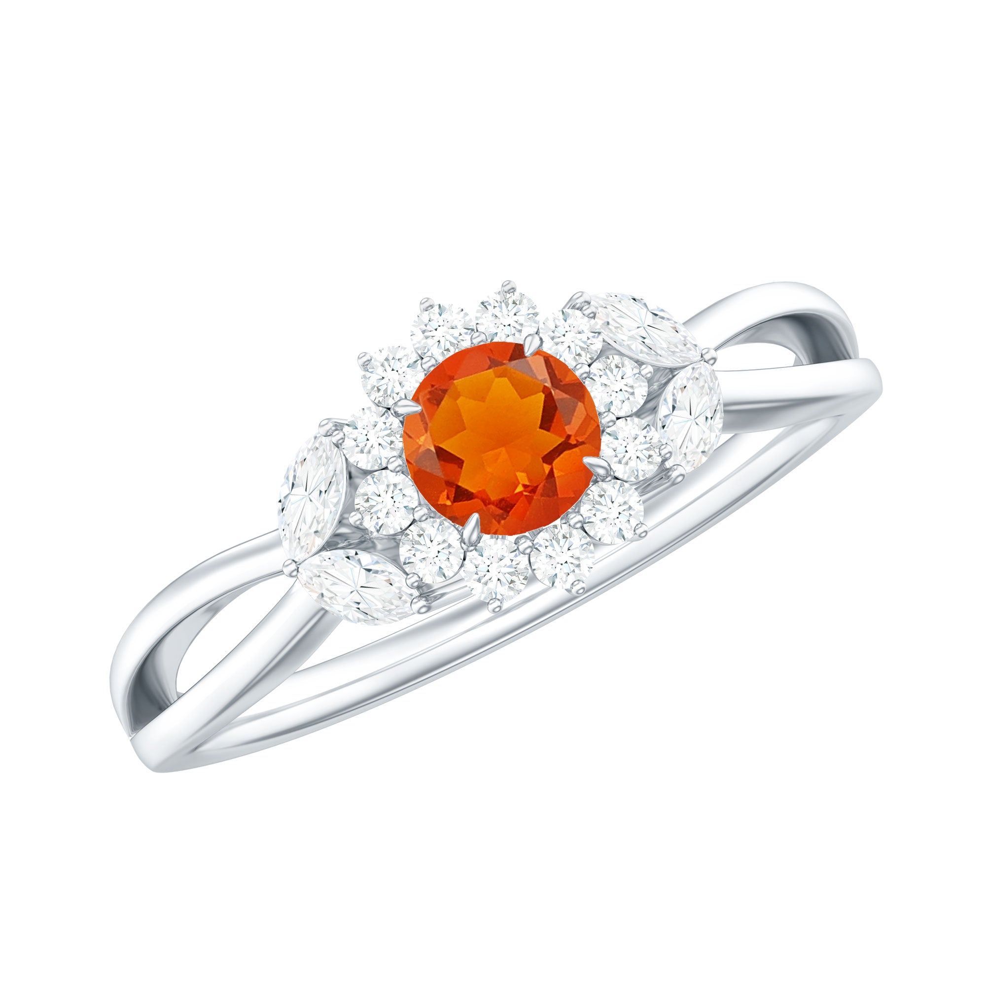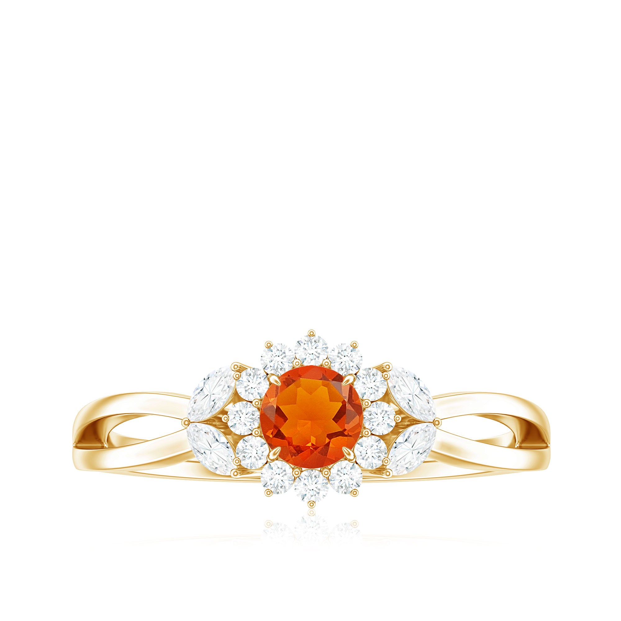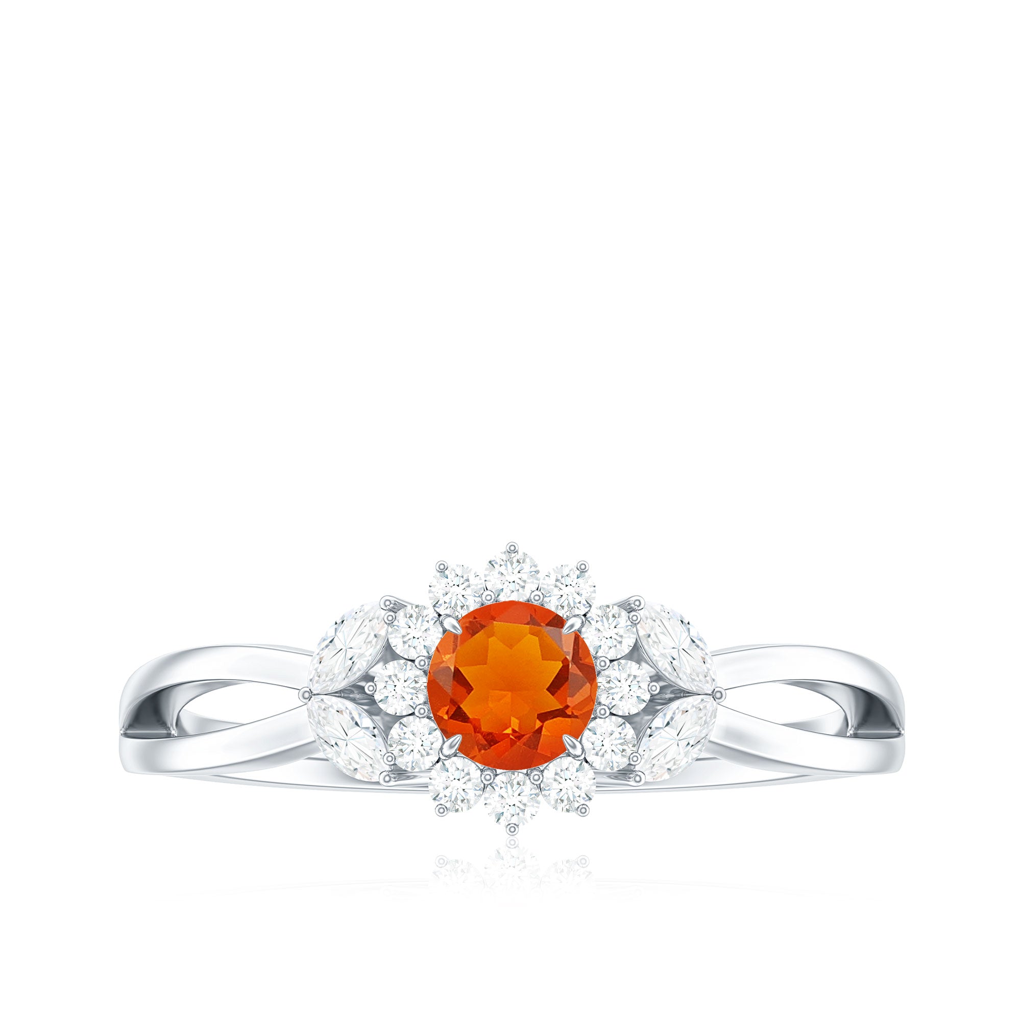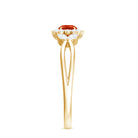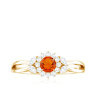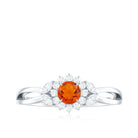 Fire Opal and Diamond Flower Engagement Ring with Split Shank