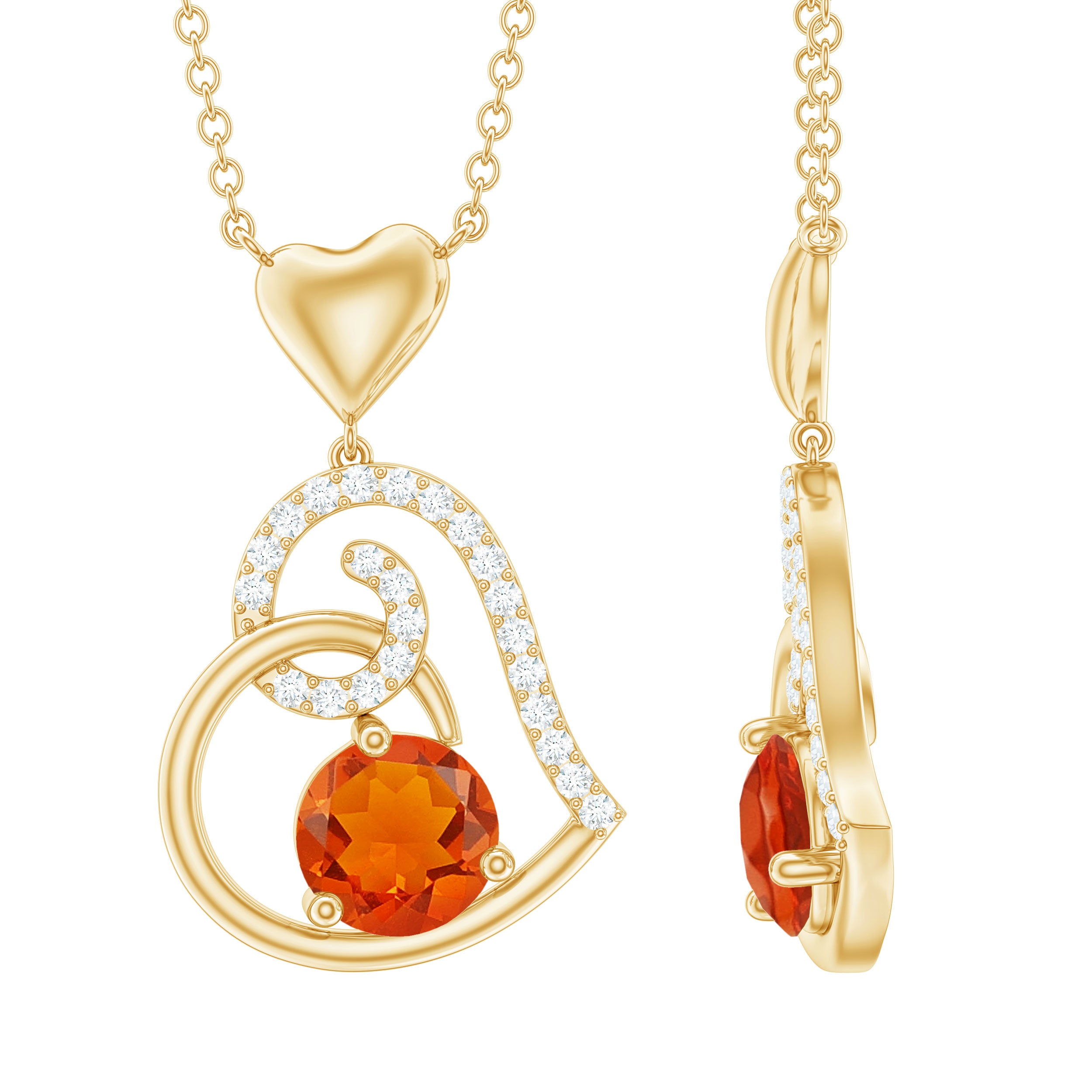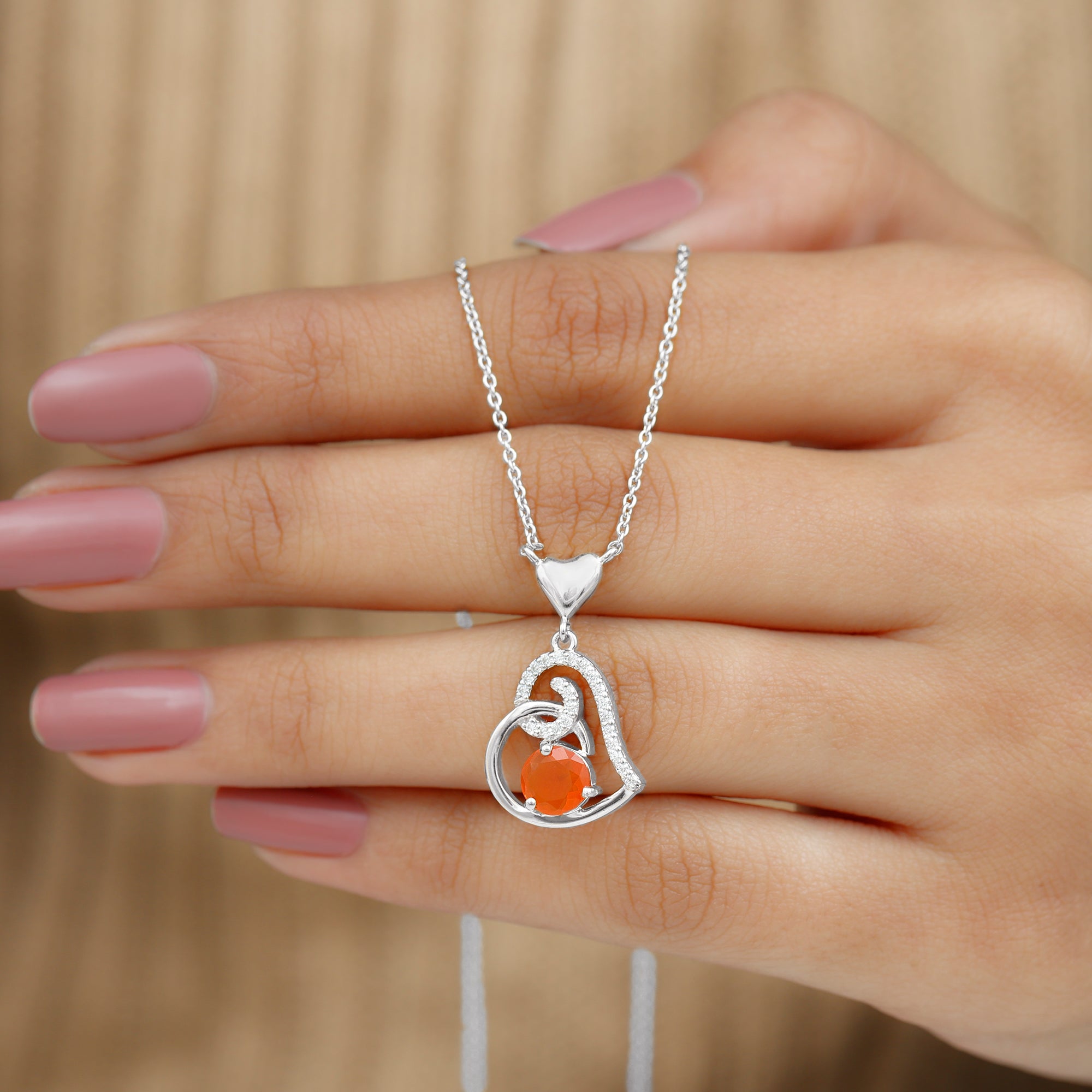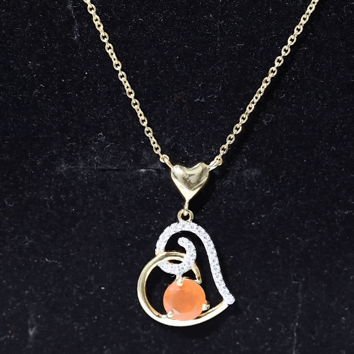 Be Dazzle with these beautiful Heart Drop Pendant embellished with Round Shape Fire Opal as Solitaire in 3 Prong Setting and Round Shape Diamond in Prong Setting, Crafted in Solid Gold.