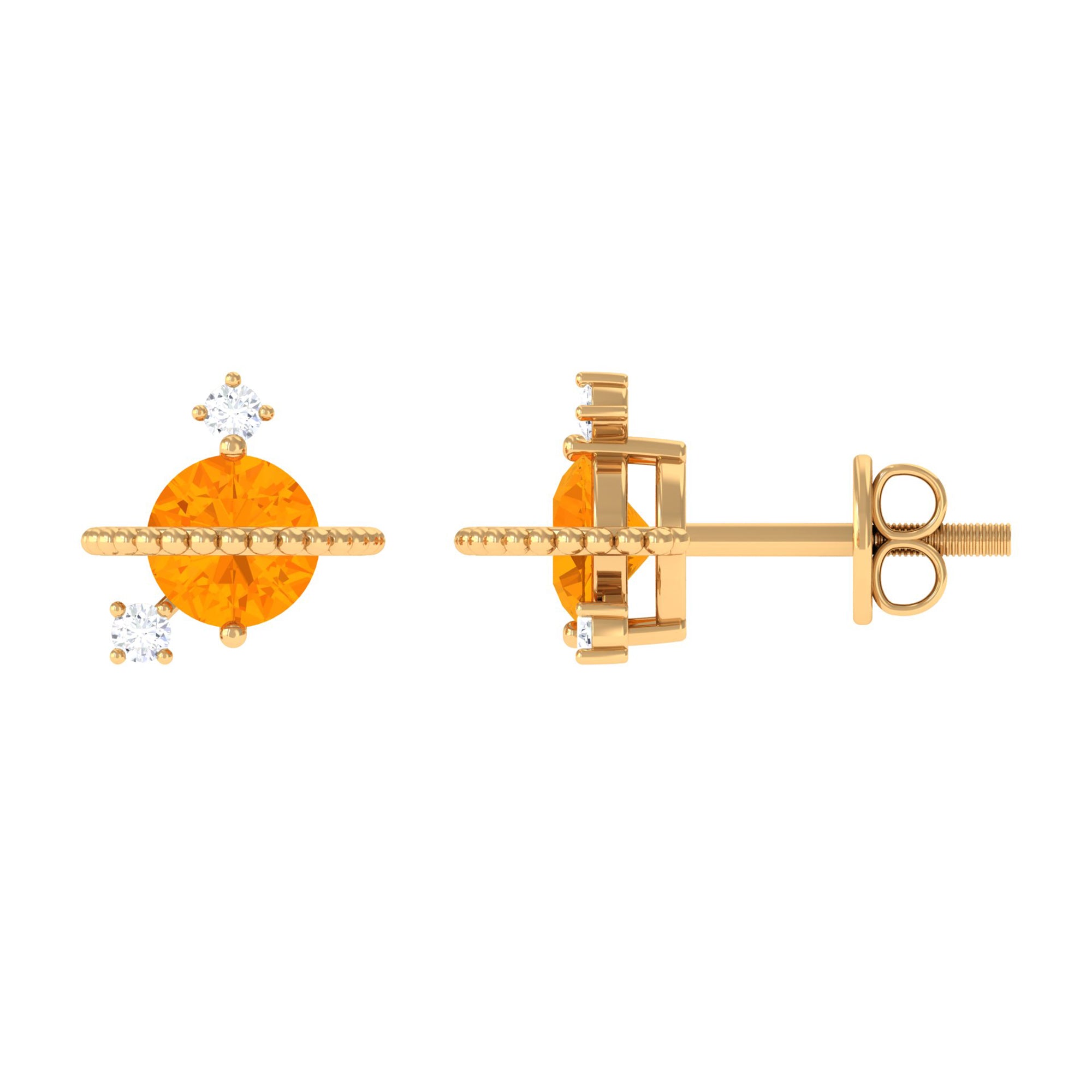 Fire Opal Contemporary Celestial Stud Earrings with Diamond