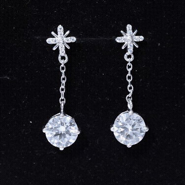 Floral Inspired 8 MM Moissanite Dangling Earrings in Silver