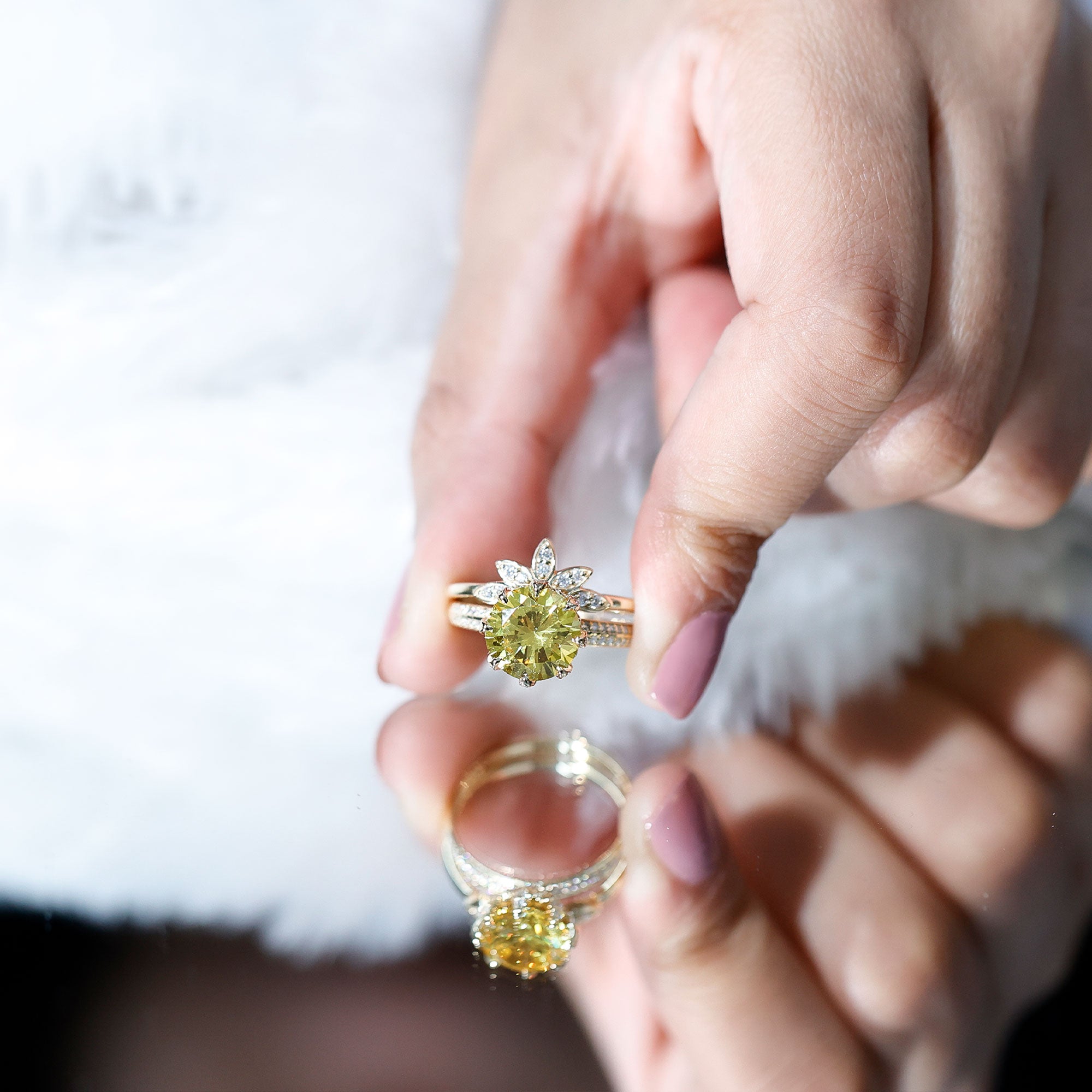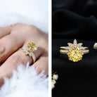Lab Grown Yellow Sapphire Wedding Engagement Ring with Enhancer