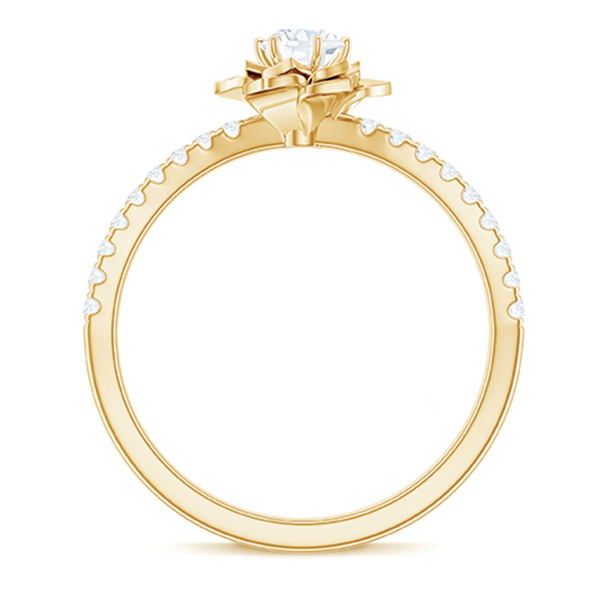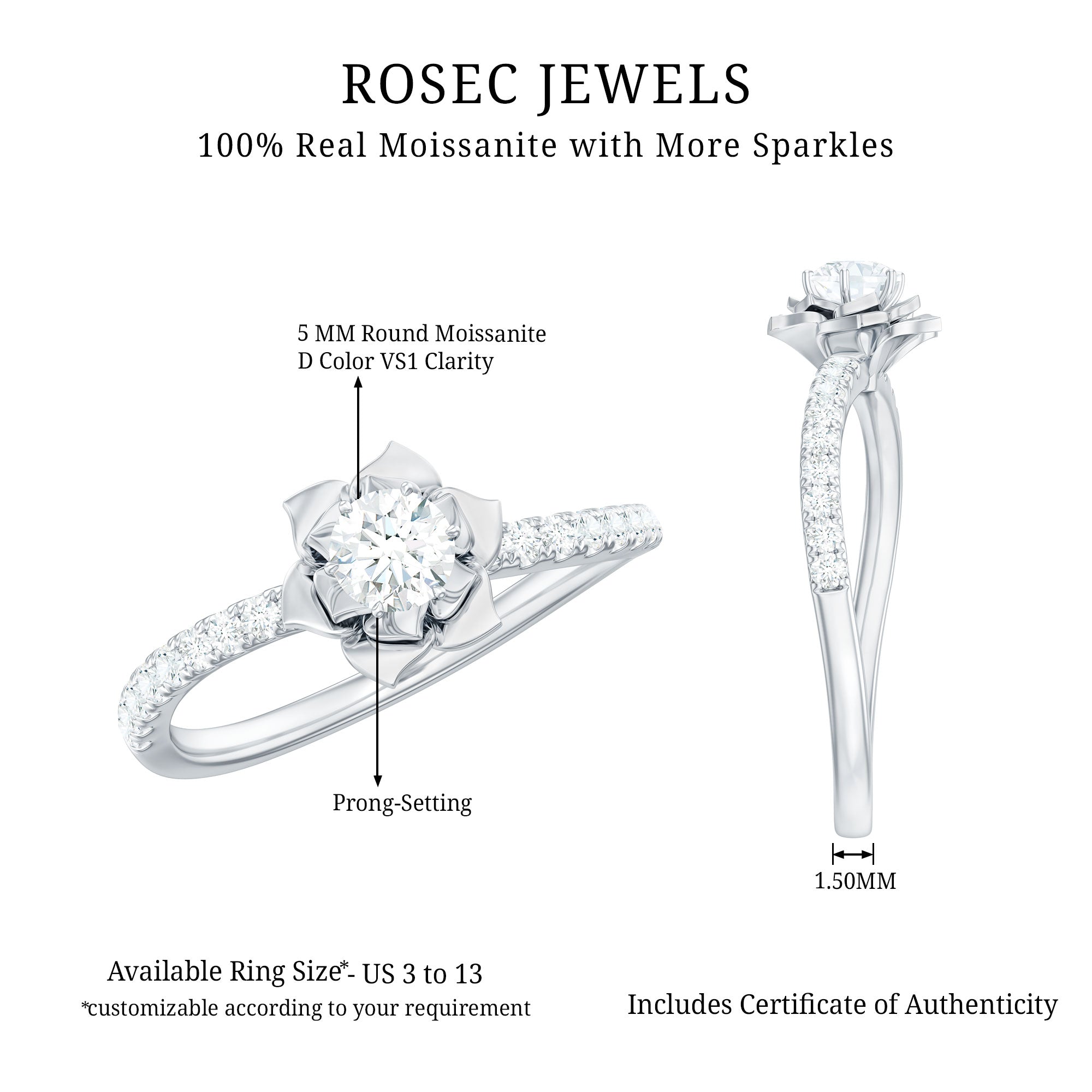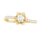 Bring joy to your beloved with this stunning Floral Engagement Ring, made of Solid Gold. The ring features a gorgeous design of a rose flower, adorned with a sparkling Round Cut Moissanite, creating a charming and elegant choice for your special occasion. This Gold Flower Engagement Ring is sure to elate and delight your beloved.