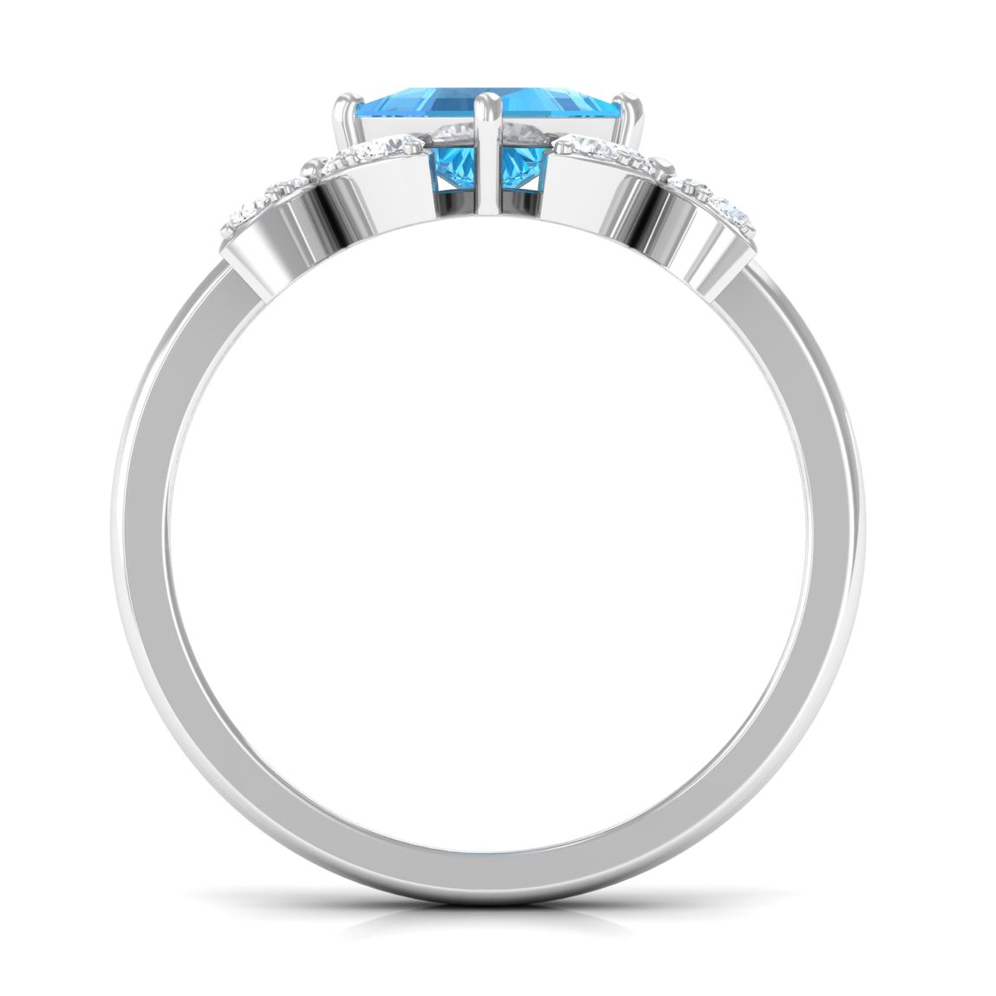 Floral Inspired Swiss Blue Topaz Engagement Ring with Diamond