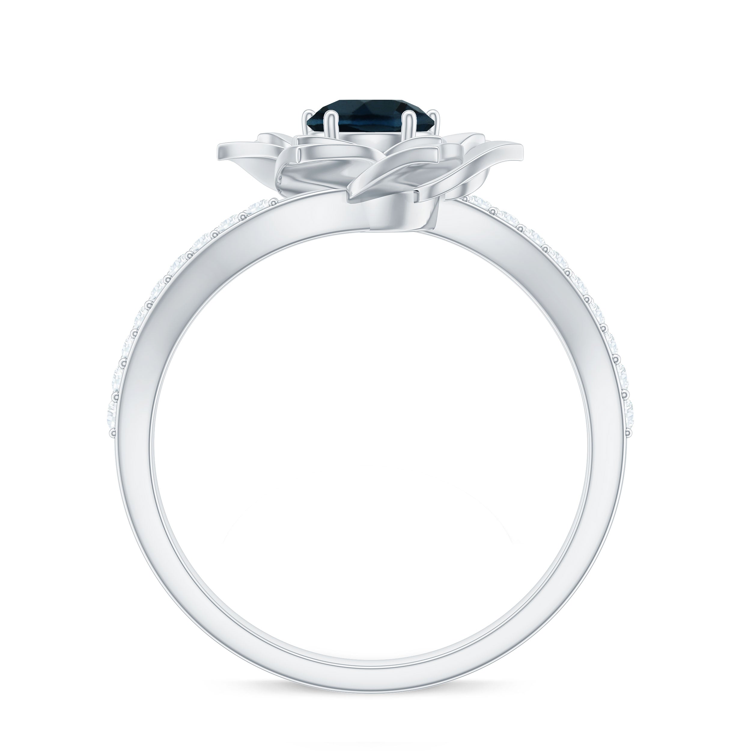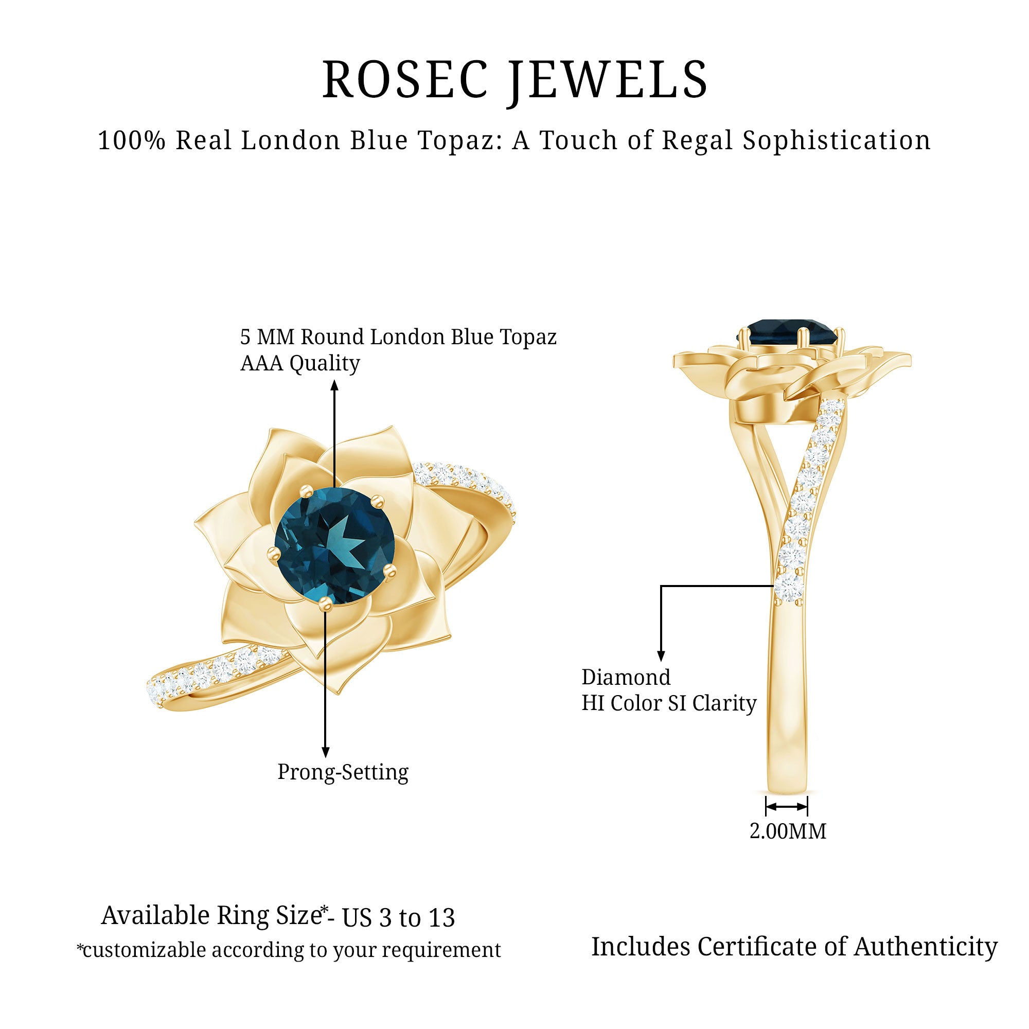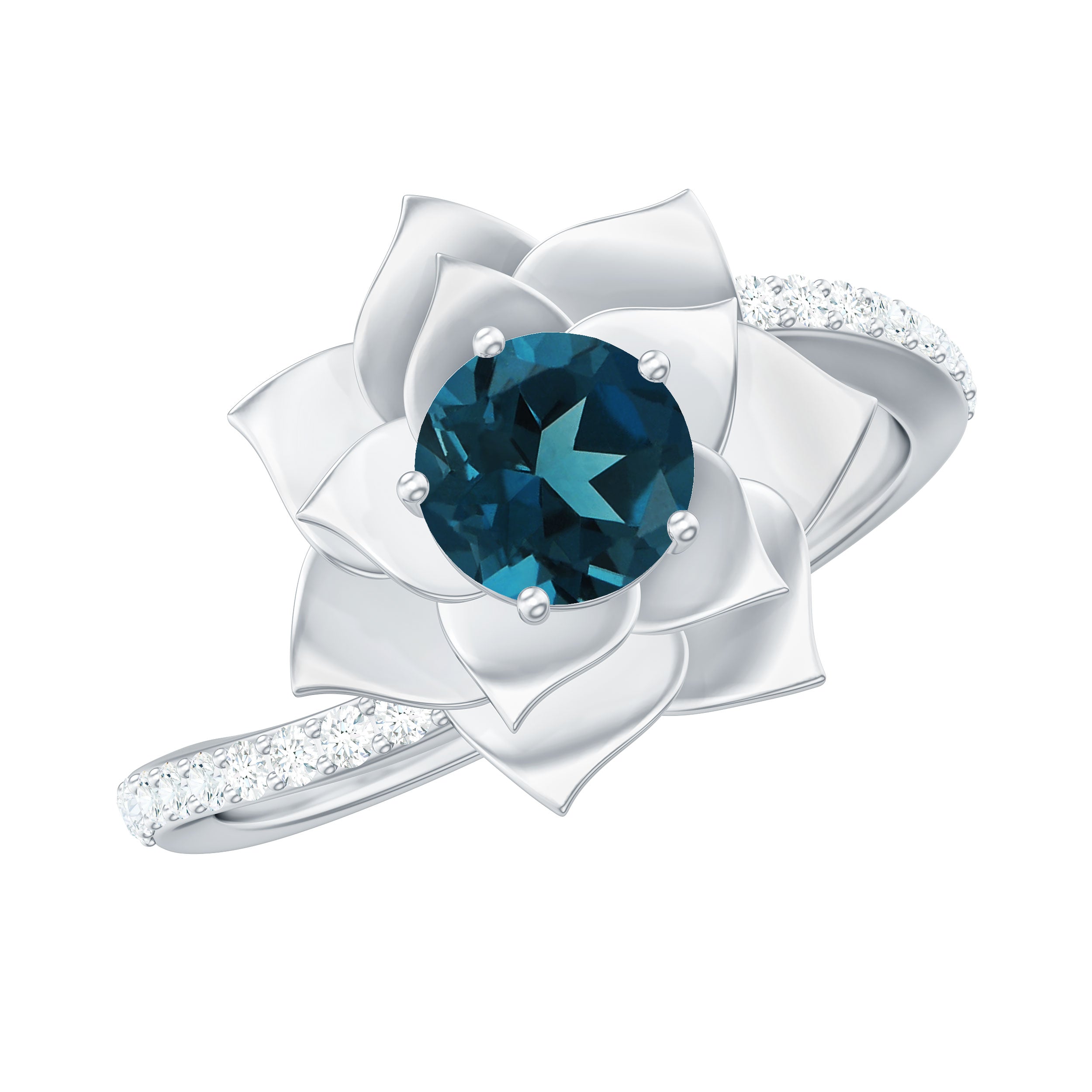 Flower Inspired London Blue Topaz Rose Engagement Ring with Diamond