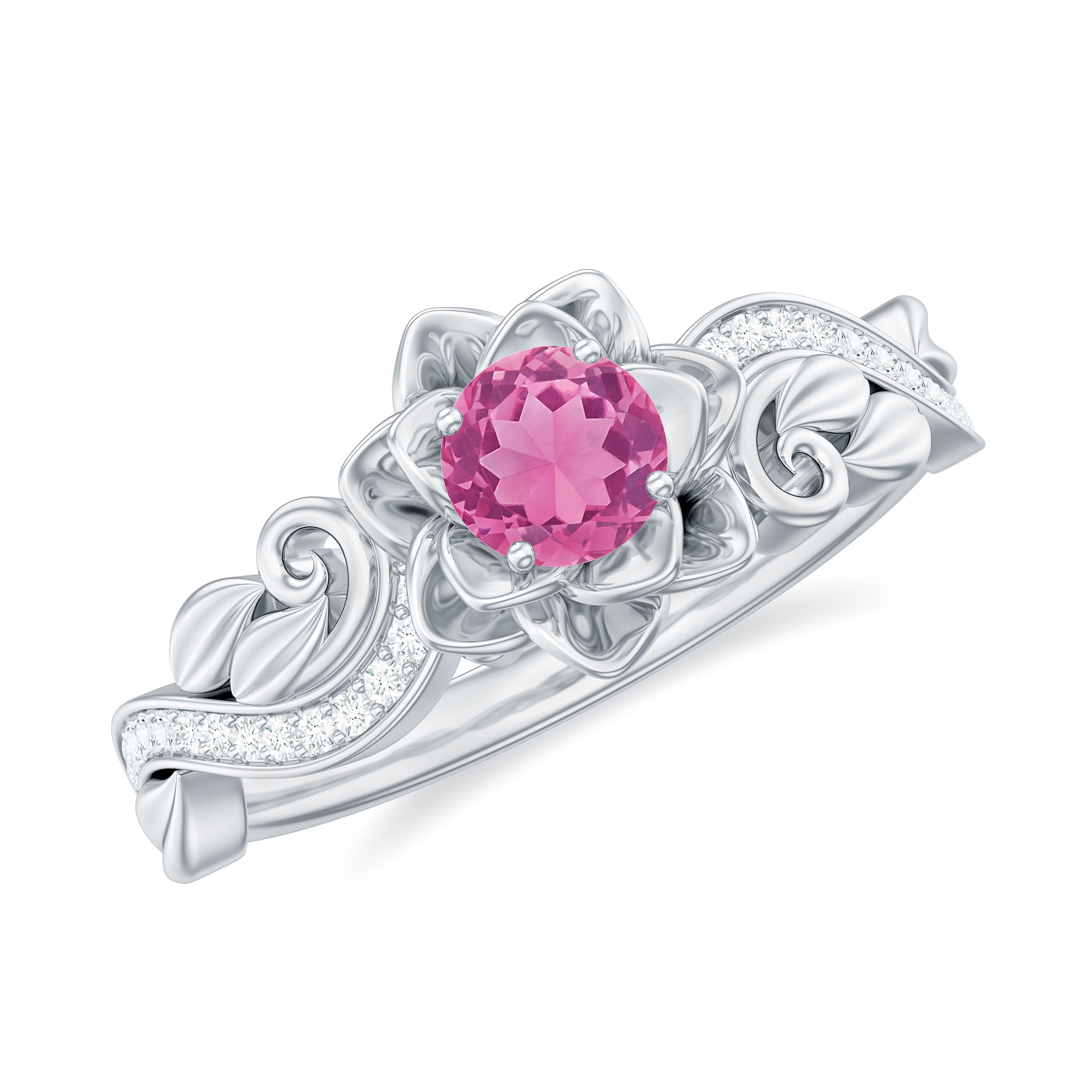 Flower Inspired Pink Tourmaline and Diamond Engagement Ring