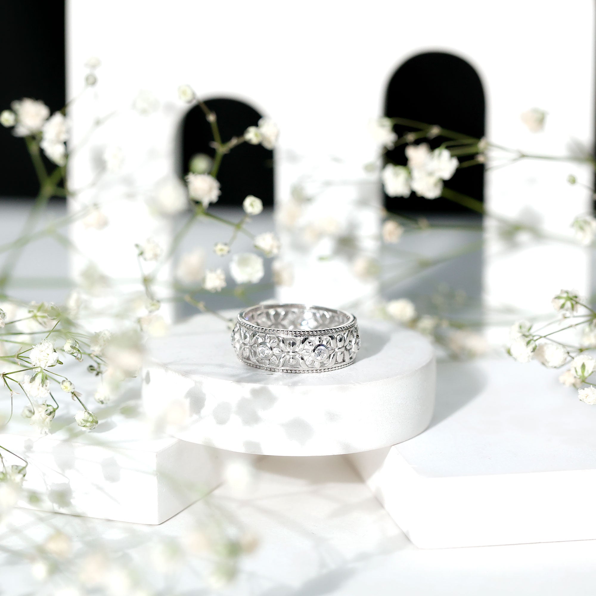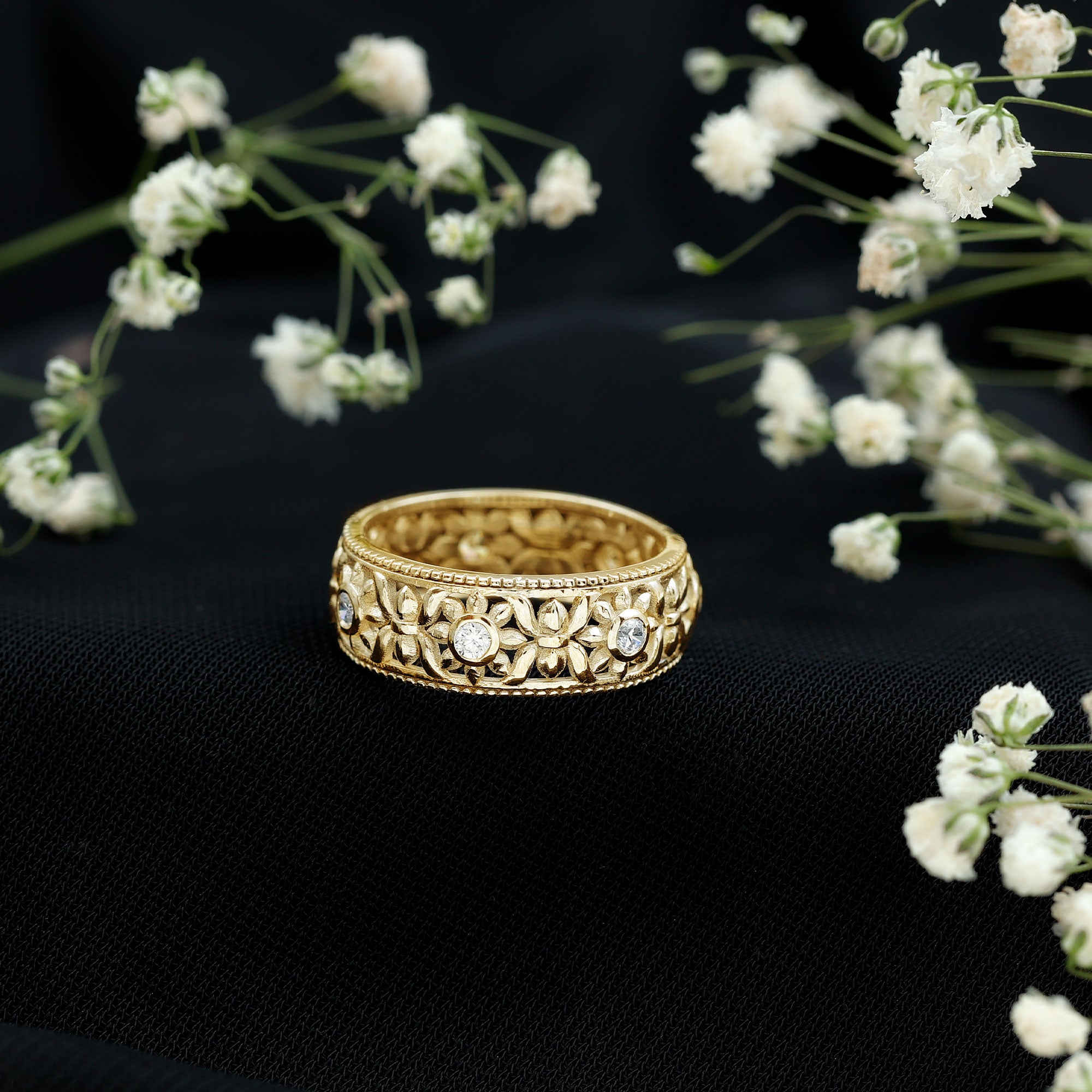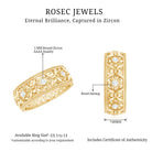 Celebrate your enduring love with this exquisite Zircon Wedding Band Ring. Crafted with meticulous attention to detail, this ring showcases a brilliant Round Zircon elegantly nestled within a Bezel Setting. What sets this piece apart is its enchanting Flower Band design, adding a touch of natural beauty and charm to the classic cubic zirconia ring. Whether youre marking a special occasion or simply expressing your love, this unique and timeless jewelry piece is a testament to the lasting beauty of your relationship. Its a symbol of your love that will shine brightly for years to come.