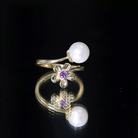 Freshwater Pearl and Amethyst Floral Toi Et Moi Ring