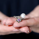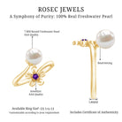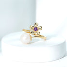 A blooming love, captured in time with this freshwater pearl and amethyst flower toi Et moi ring. This exquisite ring features a 7 MM round freshwater pearl and an amethyst, each nestled in a delicate bead setting. The two gemstones are perfectly matched, their contrasting hues symbolizing the duality of love: passion and purity, strength and tenderness. The flower design of the ring gives the perfect touch of nature and makes it more fashionable.