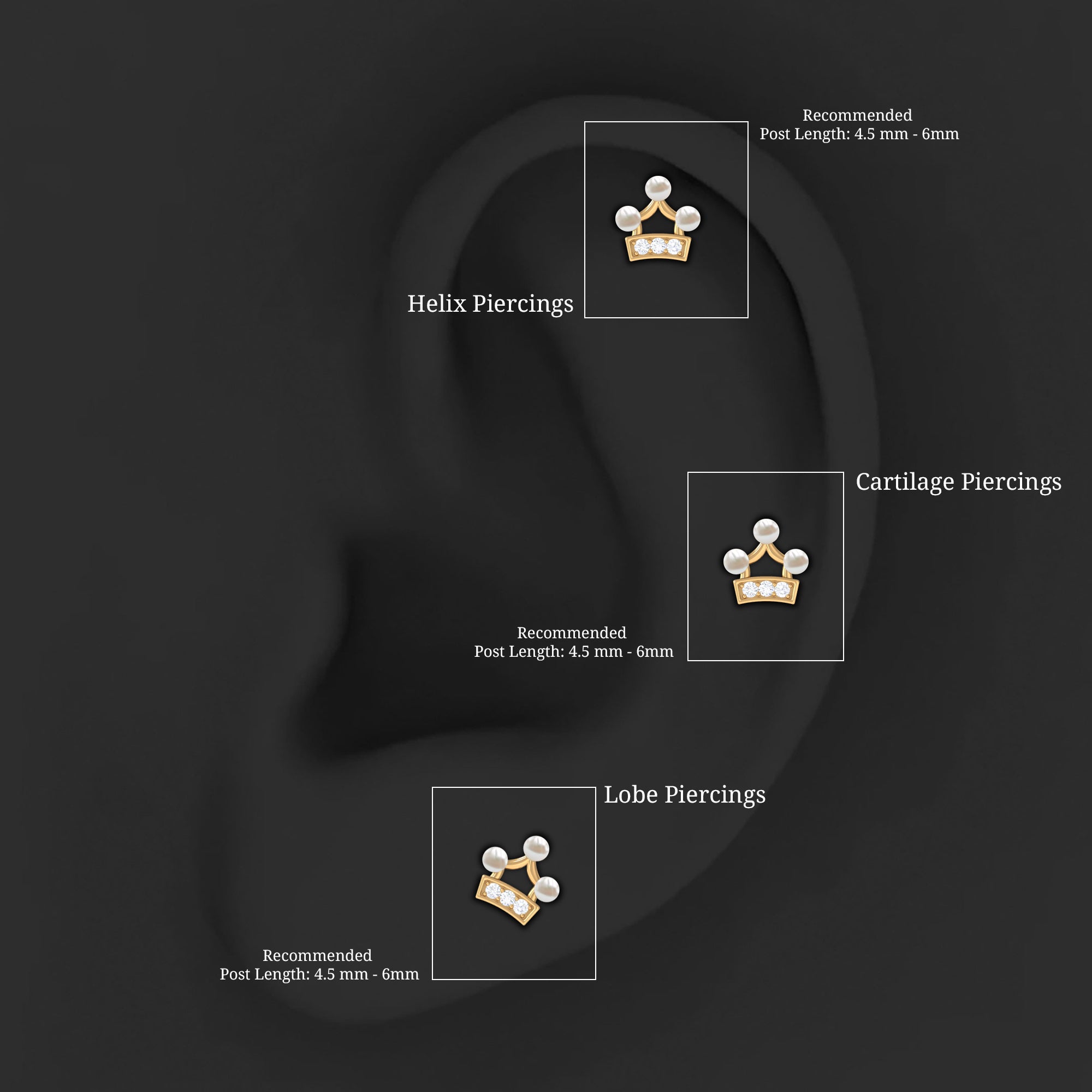Freshwater Pearl and Diamond Crown Cartilage Earring