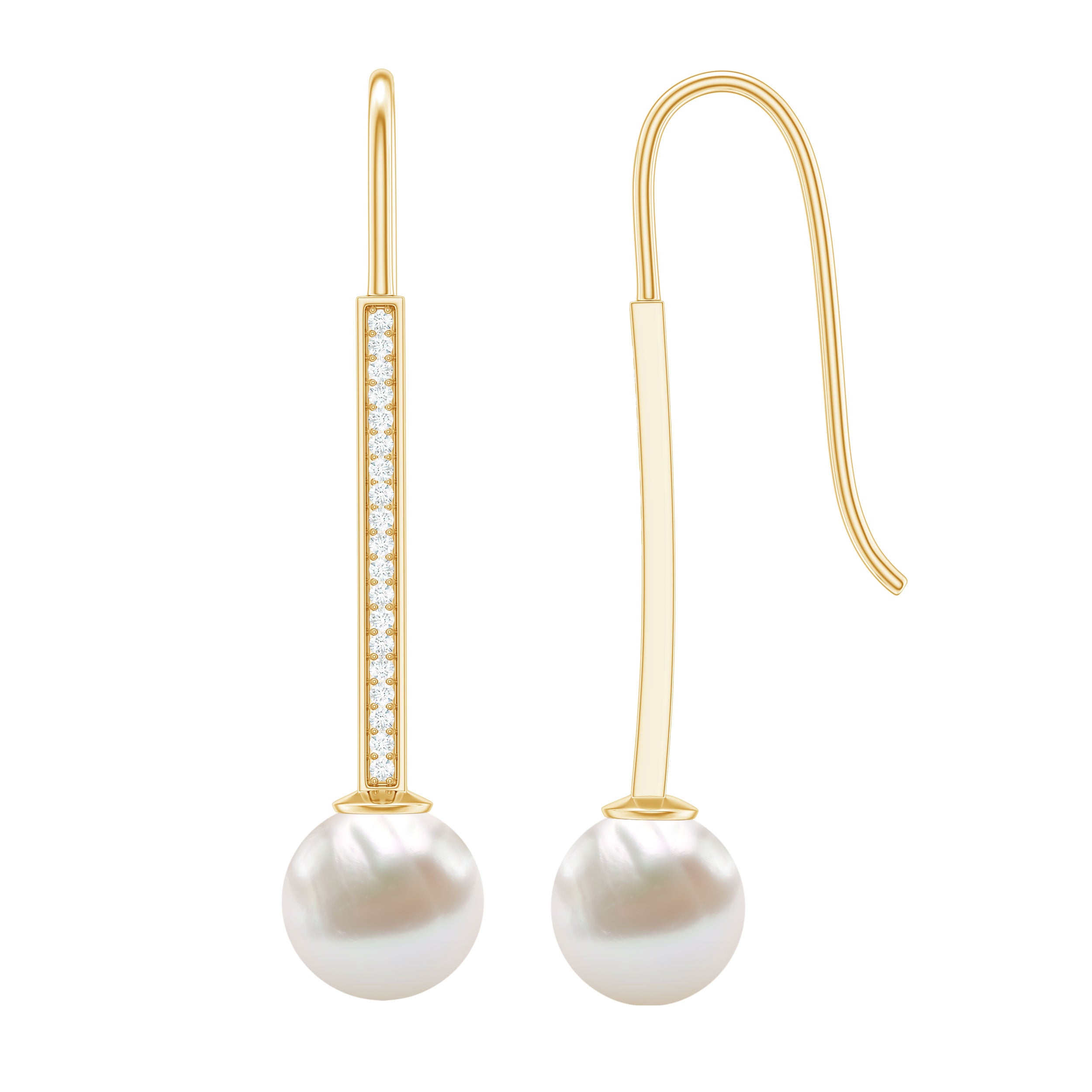 Enhance your beauty with the sleek and stylish Bar Drop Earring. Crafted in a captivating bar shape, this earring is adorned with dazzling Round Shape Diamond meticulously set in a secure Prong Setting. Adding an exquisite touch, a magnificent Freshwater Pearl is elegantly suspended as a drop. Embrace the allure of this stunning piece and let it accentuate your beauty, making you look absolutely gorgeous.