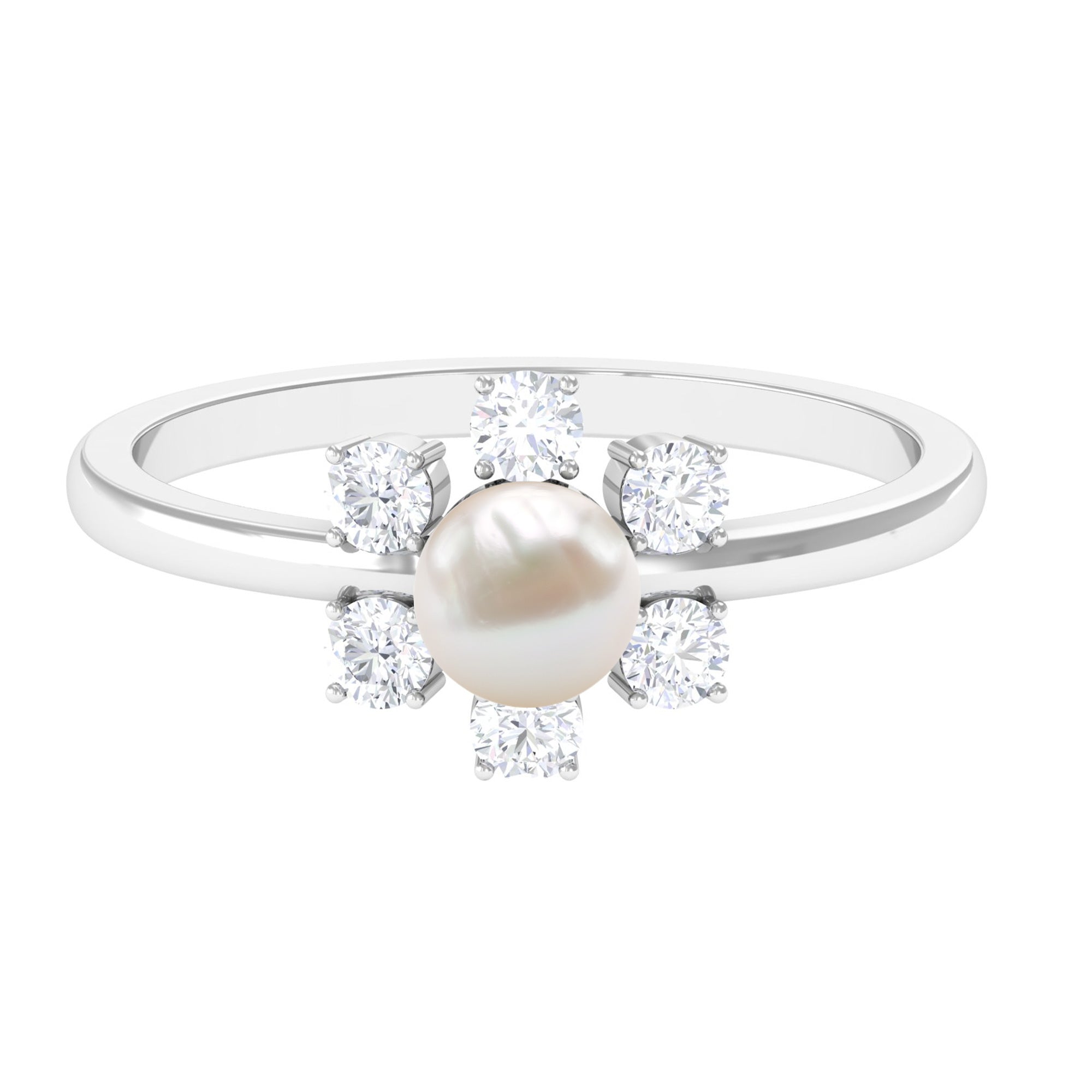 Freshwater Pearl and Diamond Flower Engagement Ring