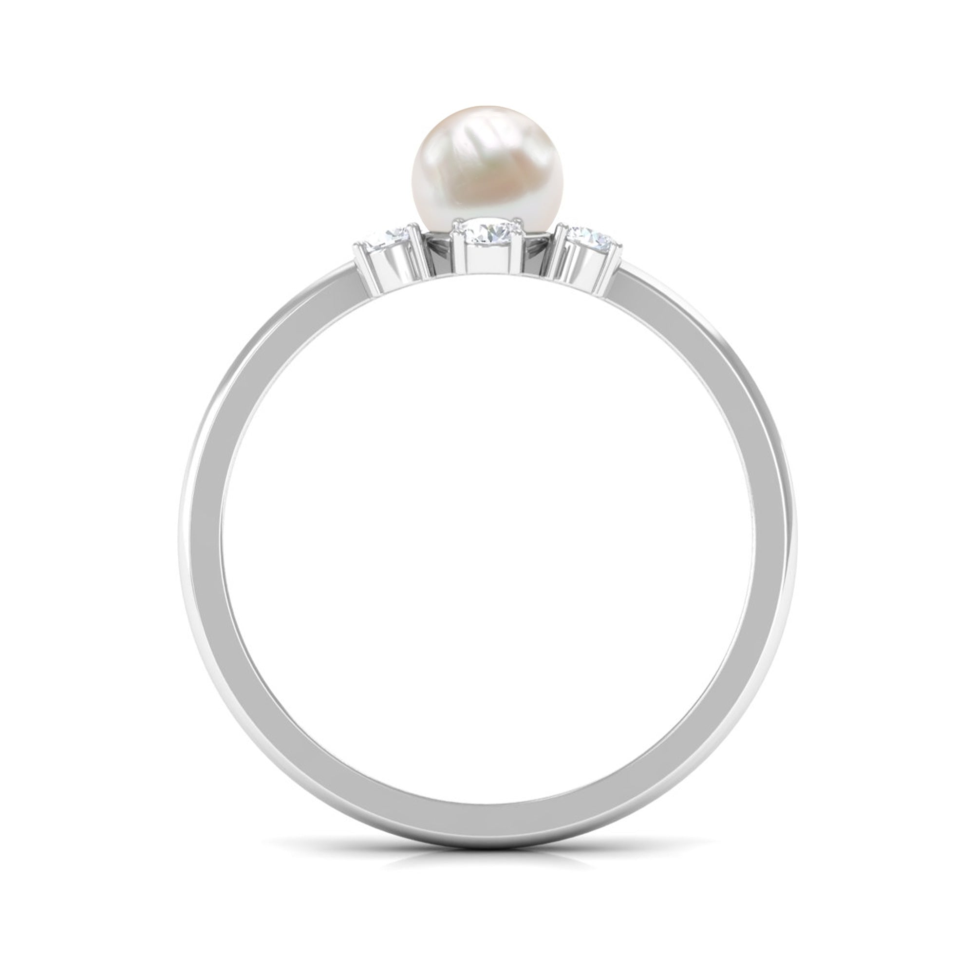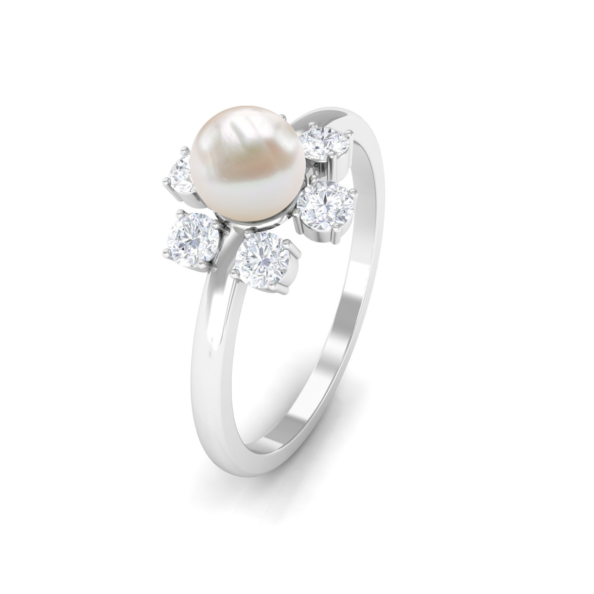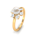 Contemporary Floral design this ring has a unique solitaire White Pearl with shining metal and a sculptural look. Amazingly crafted in Gold with a round shape Freshwater Pearl having Diamond accentuating it. Stunningly adorn yourself with this timeless Freshwater Pearl jewelry.