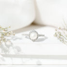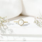 Freshwater Pearl and Diamond Halo Engagement Ring