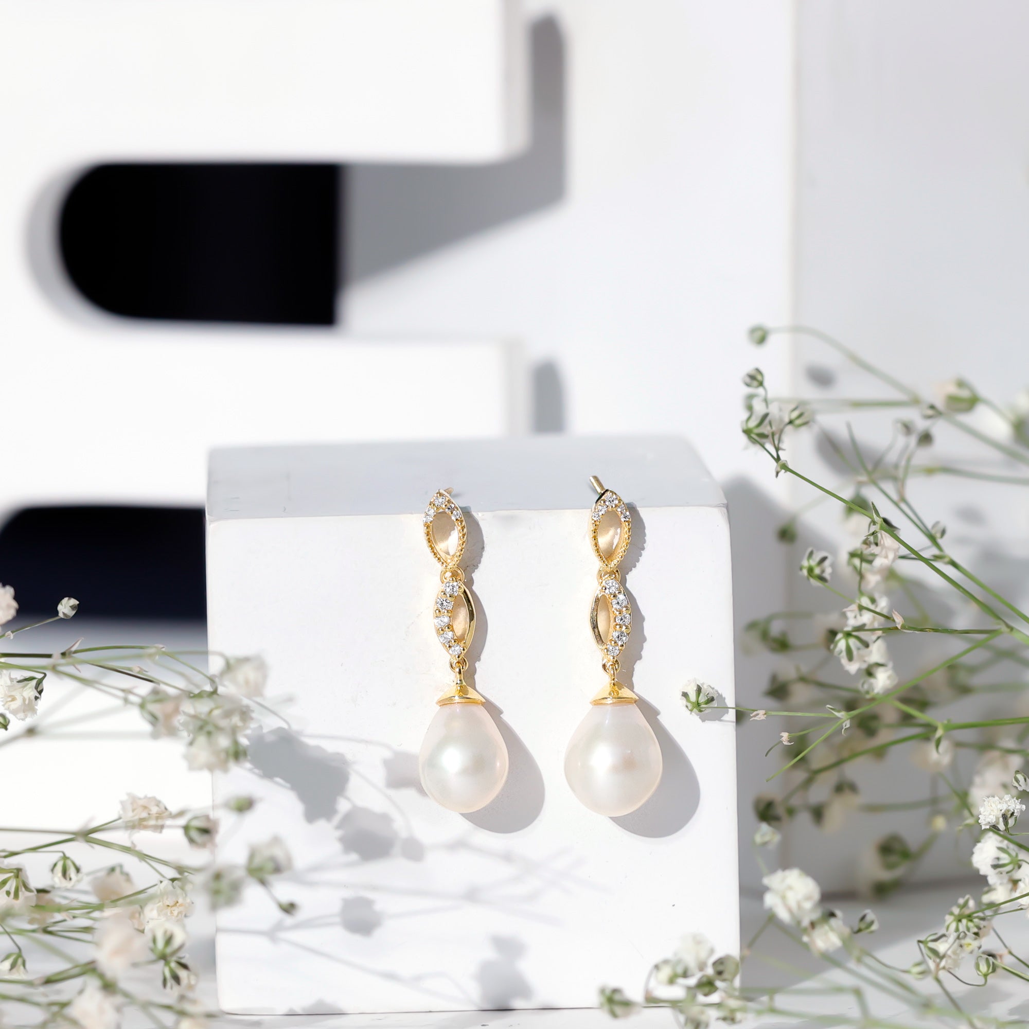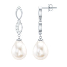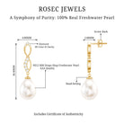 Embrace the infinite possibilities of love with these exquisite white freshwater pearls and Diamond infinity drop earrings. Adorned with a graceful infinity symbol, these earrings shimmer with the radiant brilliance of 9X12 MM pearl drops and sparkling Diamond encrusted over the infinity symbol, creating a dazzling display that will surely get attention. Together, these two precious gems create a truly breathtaking piece of jewelry that is perfect for any occasion.