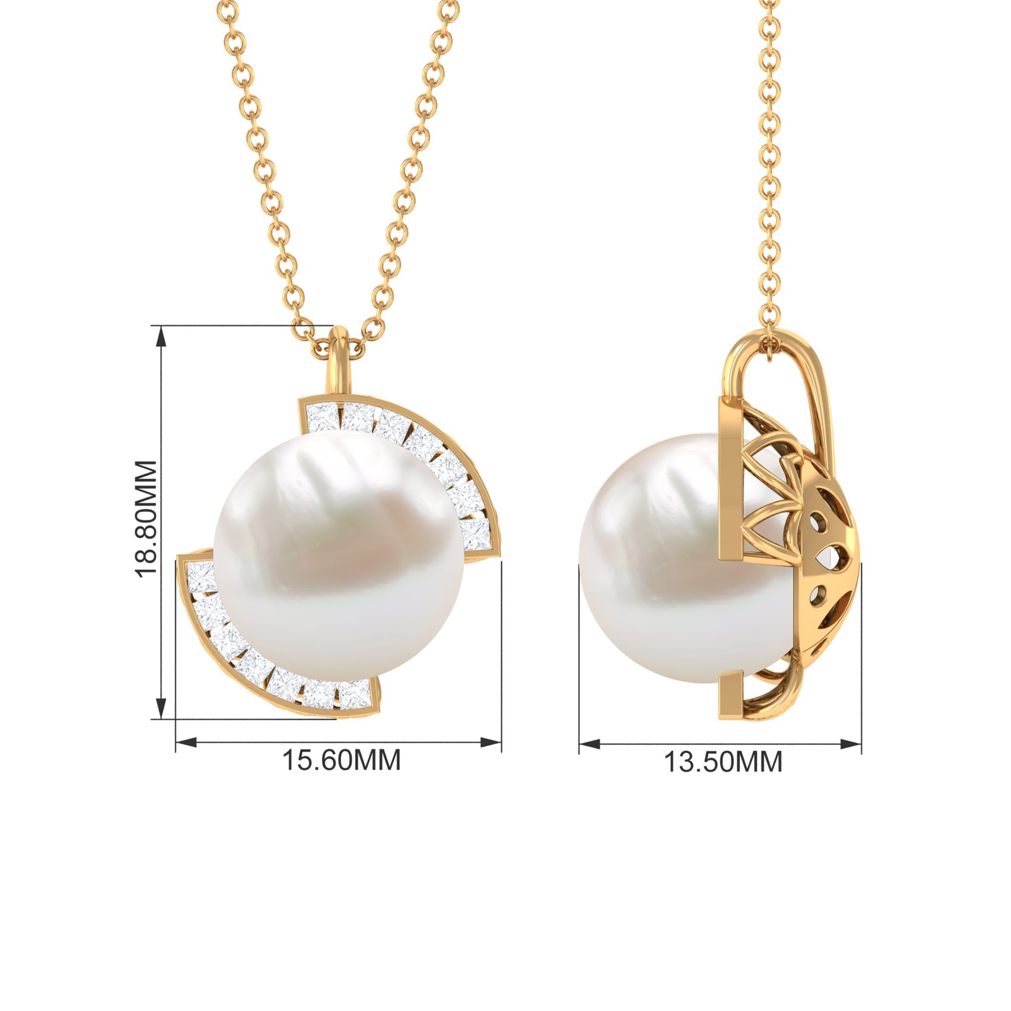 Bring a smile to her face by presenting this beautiful Minimal Pendant Necklace. Embellished with a Round Shape Freshwater Pearl and Princess Cut Diamonds. This Pearl Pendant Necklace will make a pleasant addition to her jewelry collection, something she would always keep close to her heart.