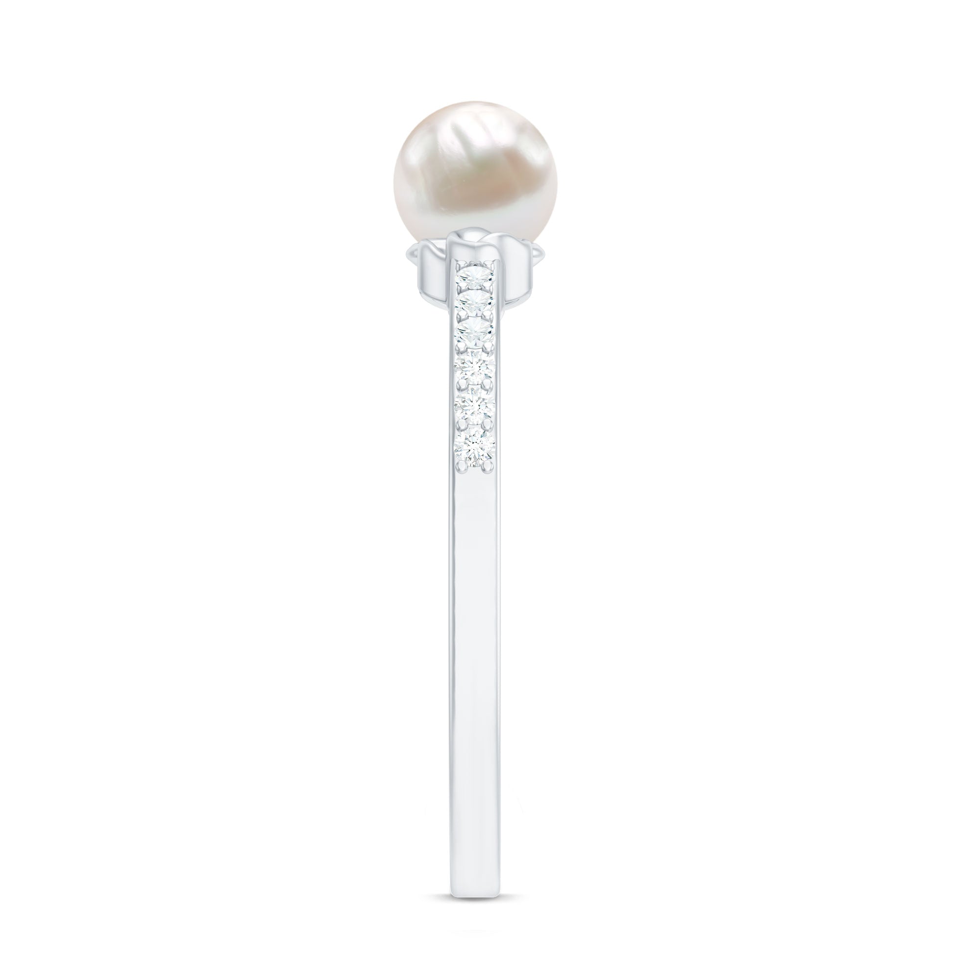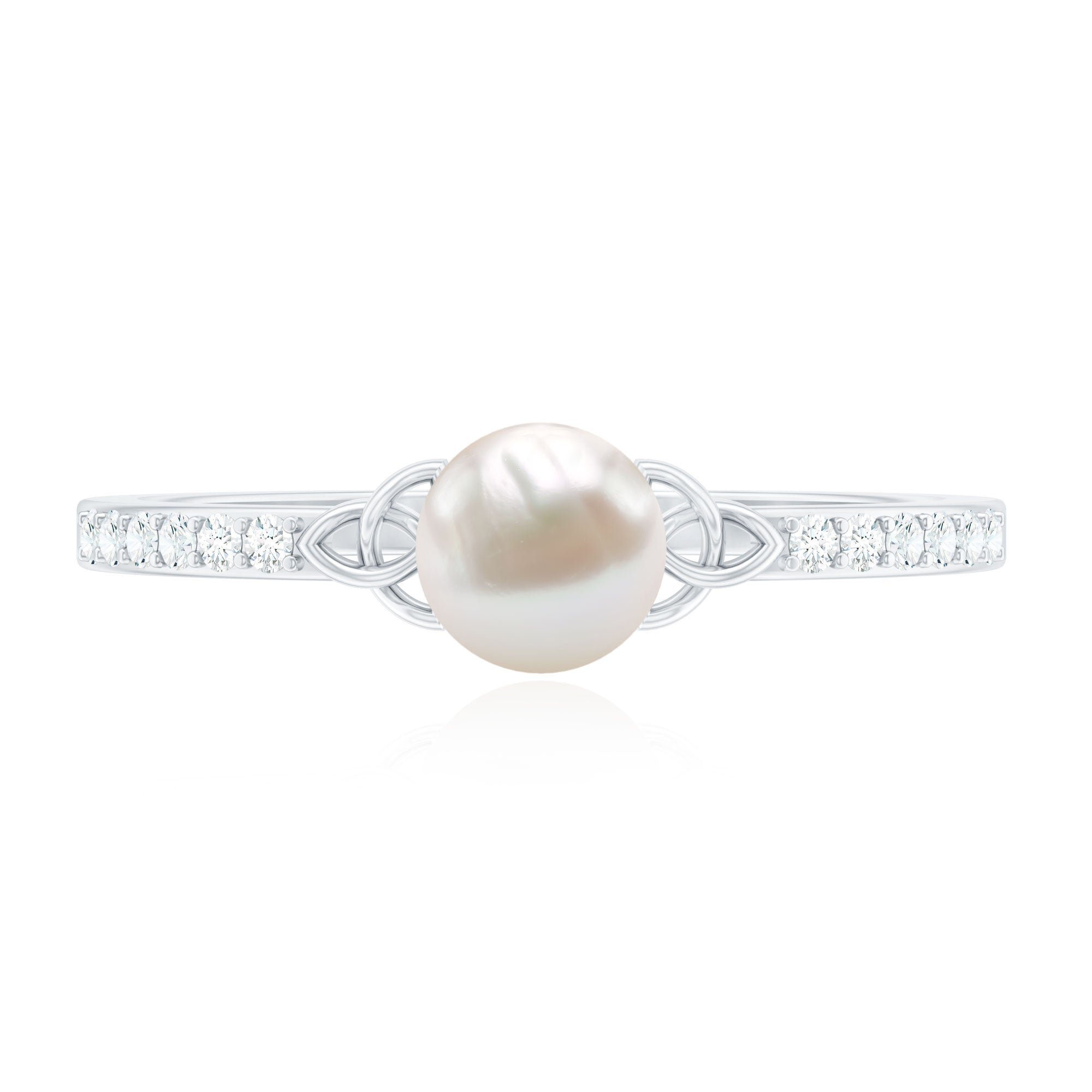 Freshwater Pearl and Diamond Side Stone Engagement Ring with Celtic Details
