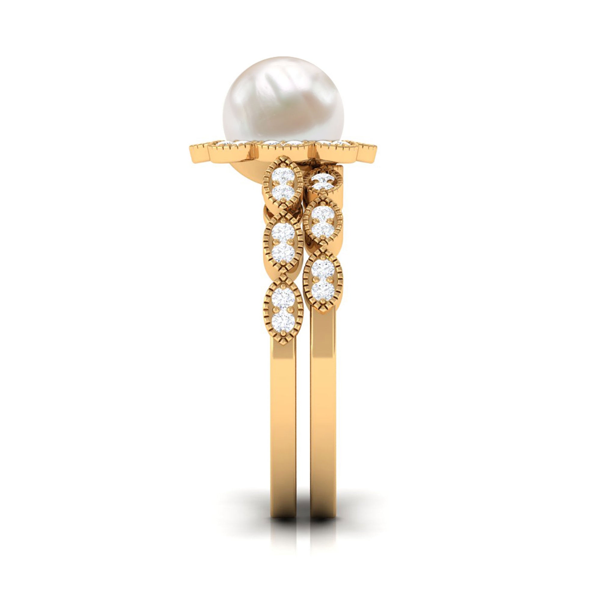 Freshwater Pearl and Diamond Wedding Ring Set