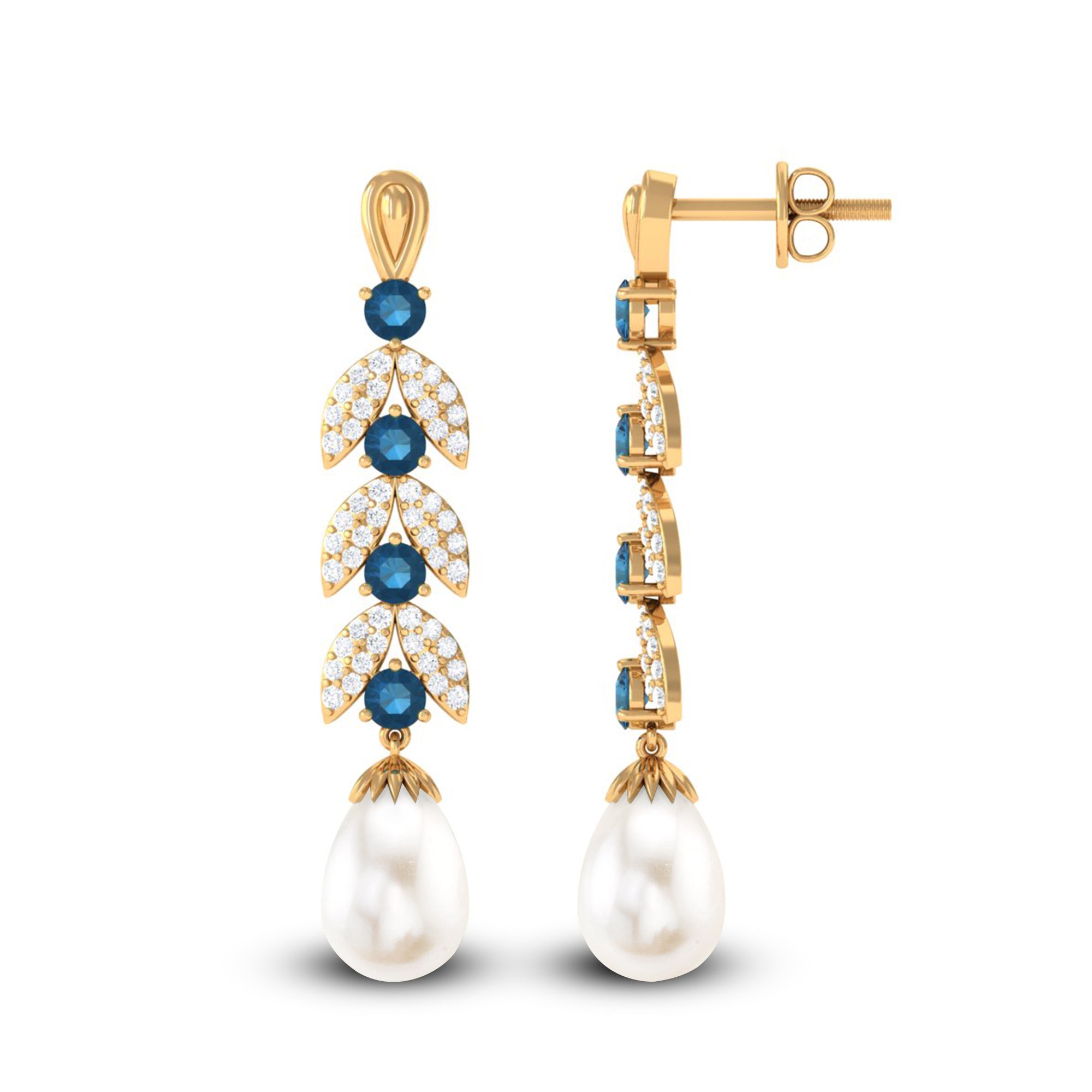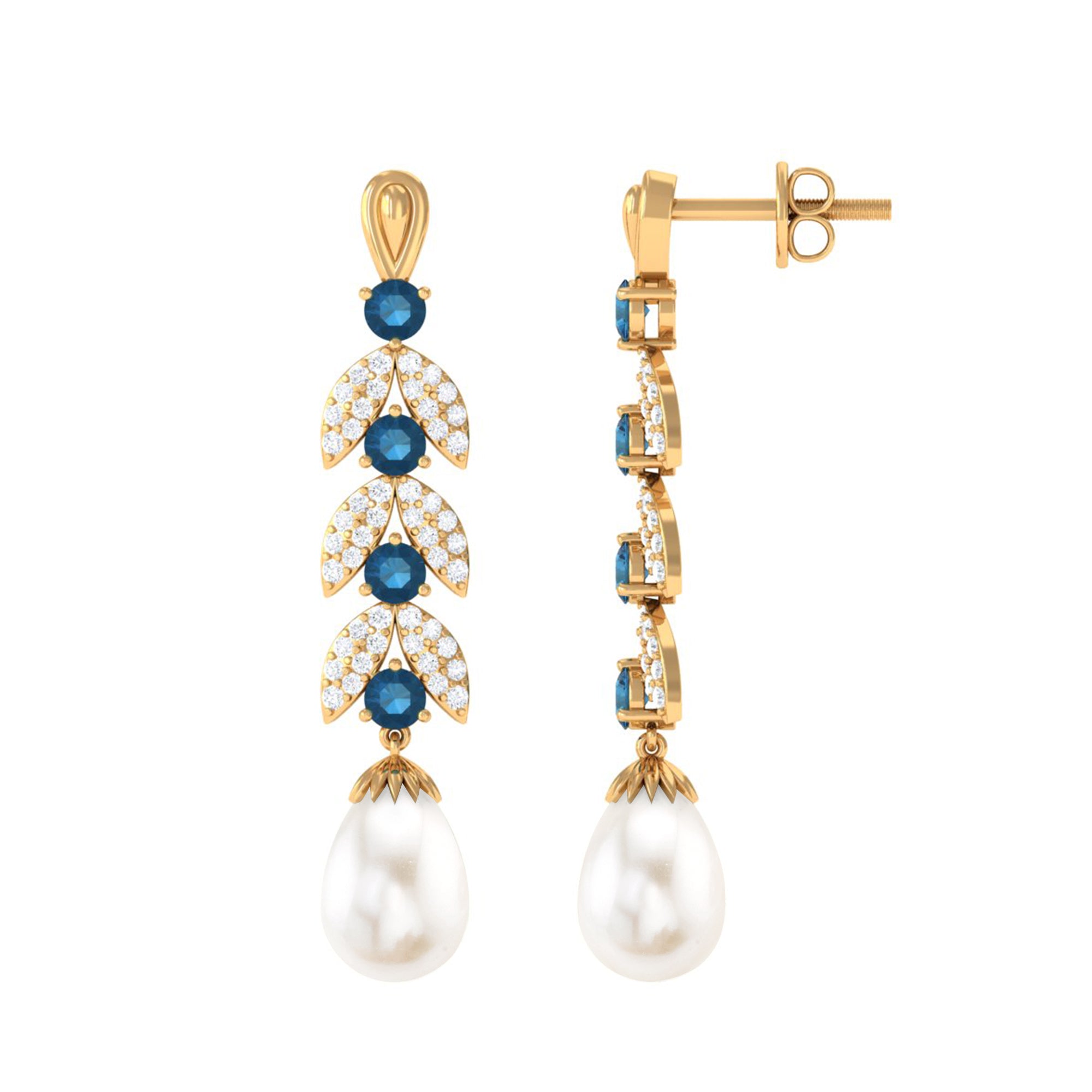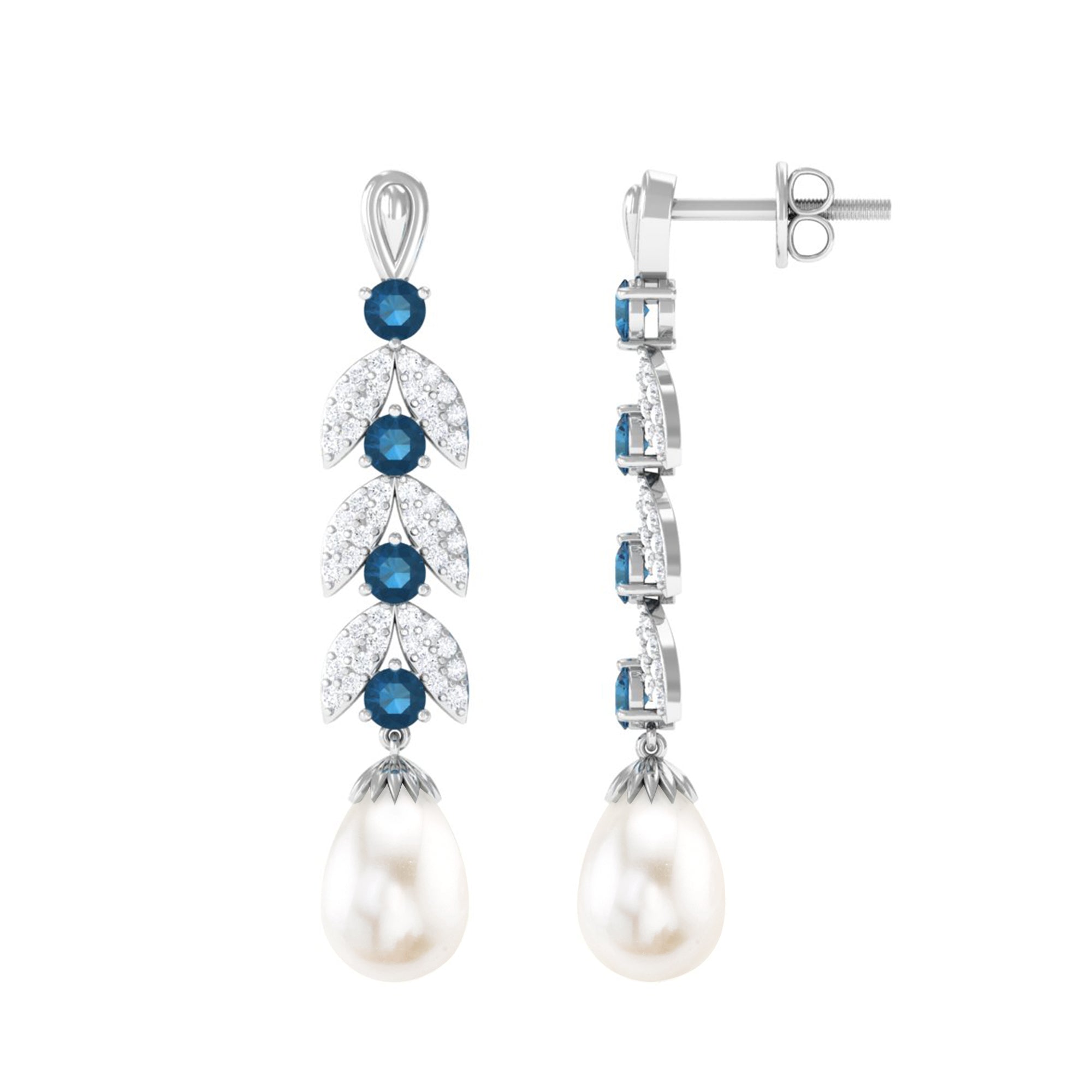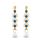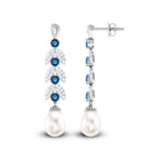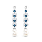 Freshwater Pearl and London Blue Topaz Drop Earrings with Moissanite