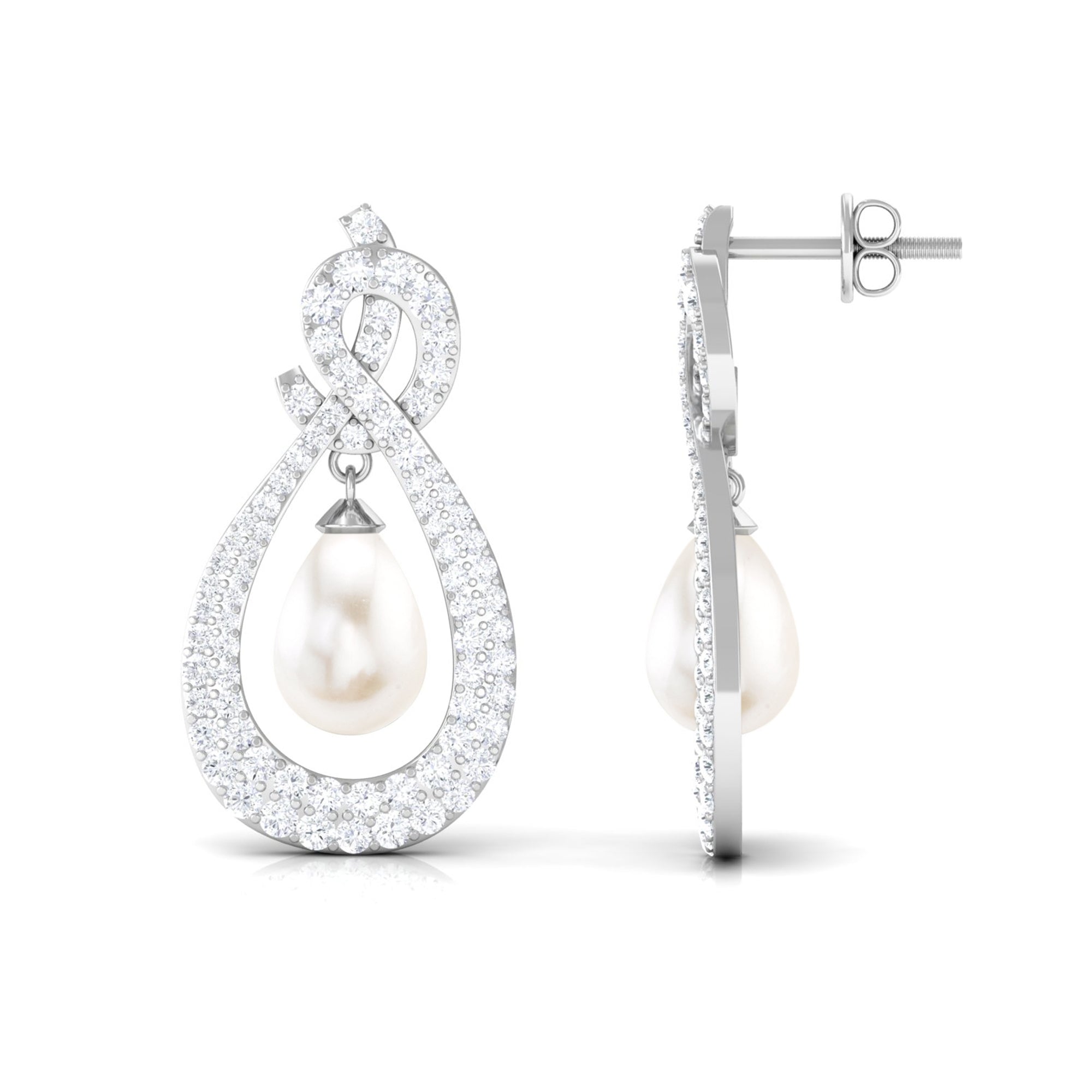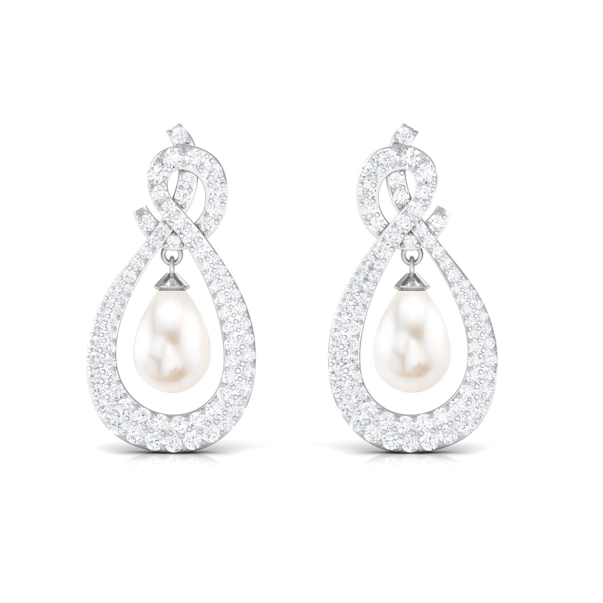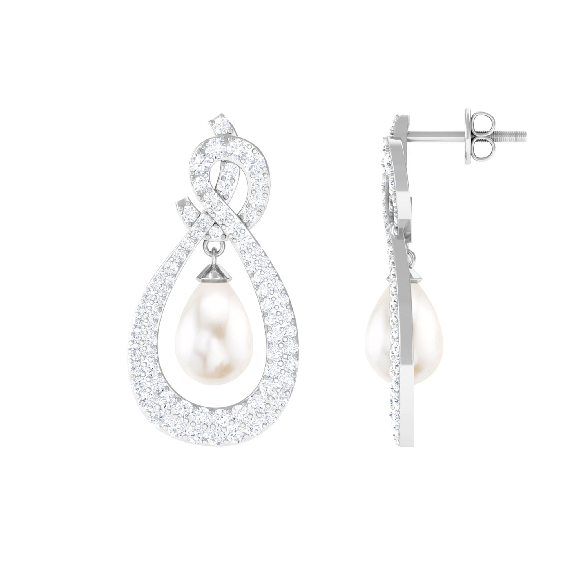 Freshwater Pearl Bridal Dangle Earrings with Moissanite Accent
