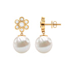 The drop earring pair combines the shimmer of Diamond and the timeless elegance of pearl to create this effortlessly classic piece. Featuring a bead set round pearl and bezel set round Diamond, that form a delicate floral motif above the white gemstone, the screw back earrings have an unmatched beauty that is sure to turn heads. Wear them as an everyday companion or to add a bit of shine to your looks.