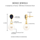 Freshwater Pearl Drop Earrings with Black Opal and Moissanite