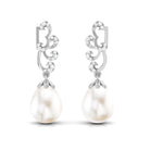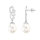 Freshwater Pearl Drop Earrings with Diamond Stones