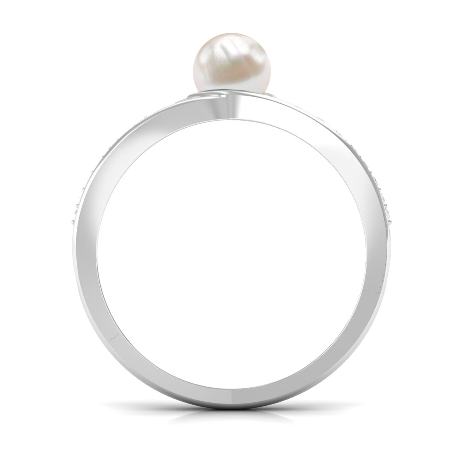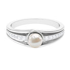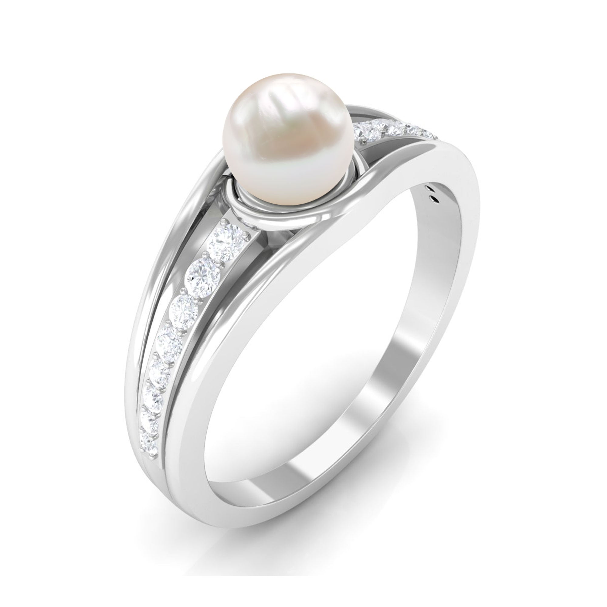 Freshwater Pearl Engagement Ring with Diamond Side Stones