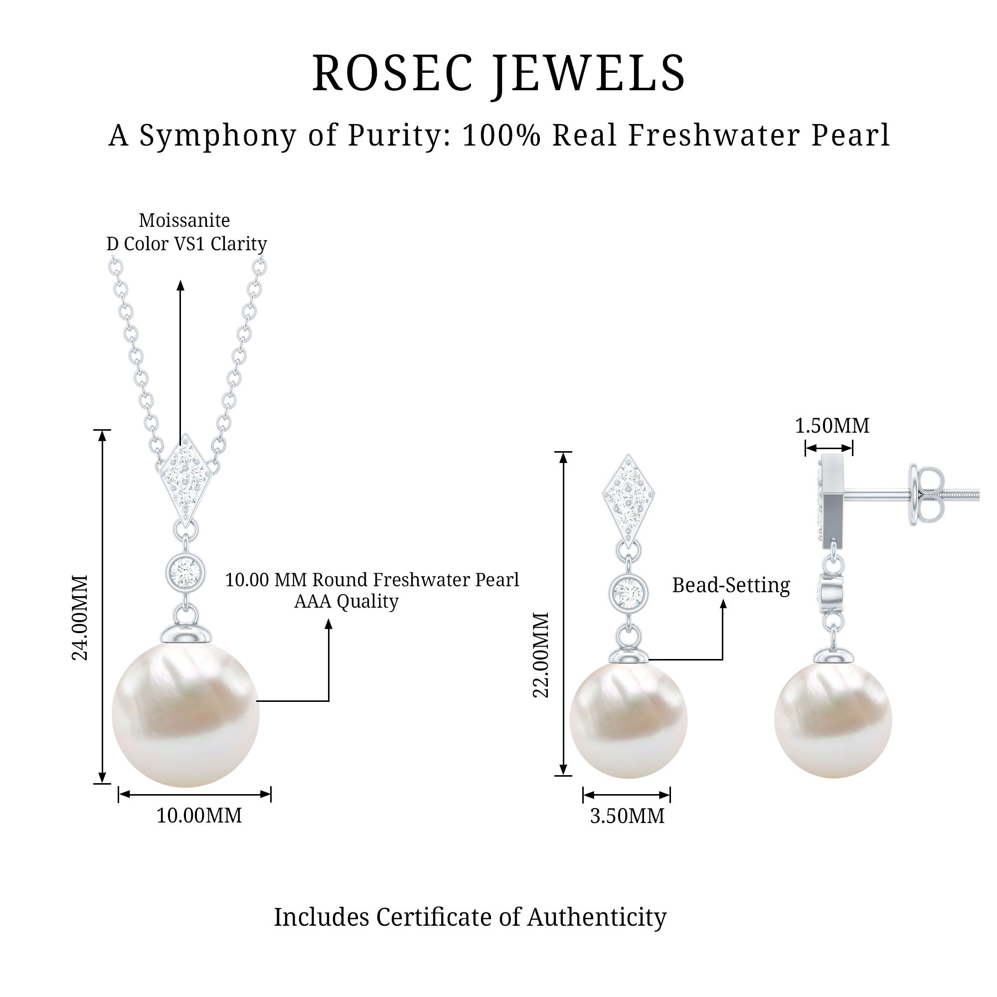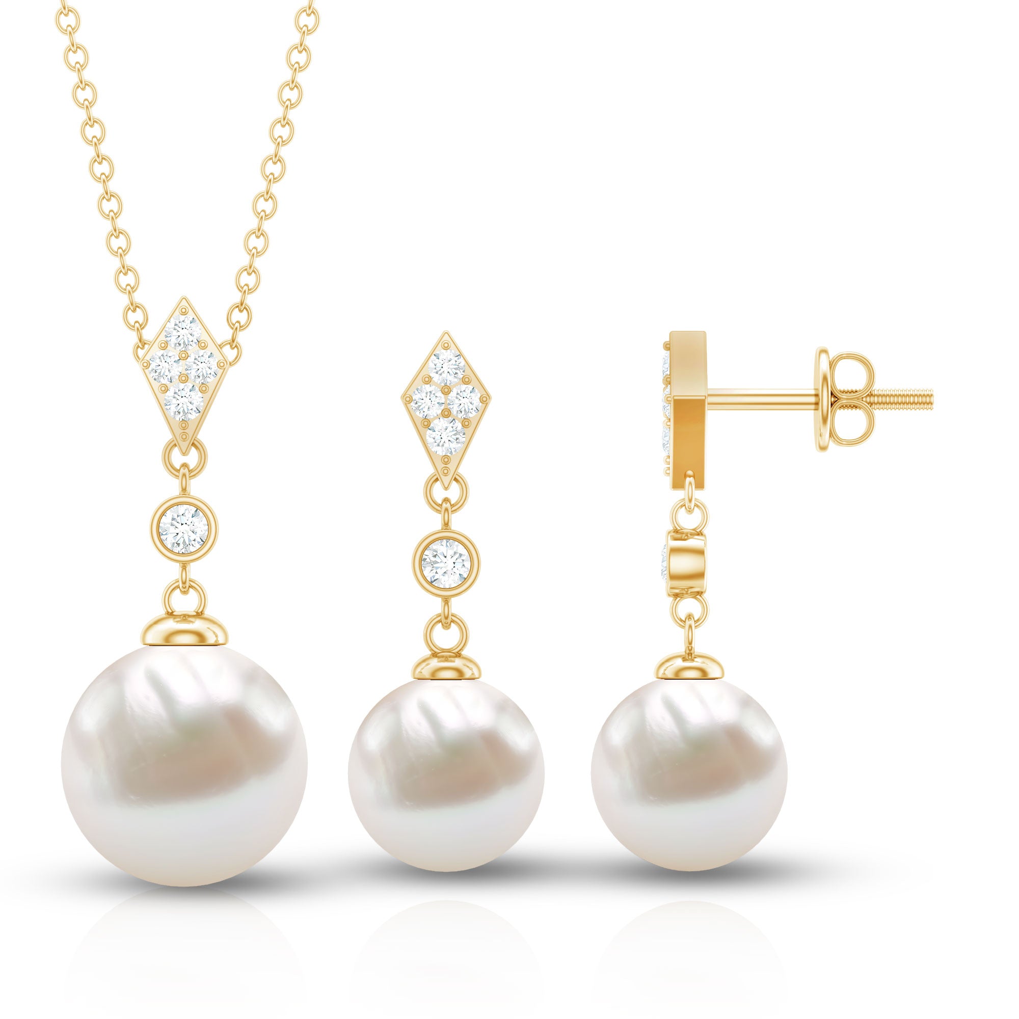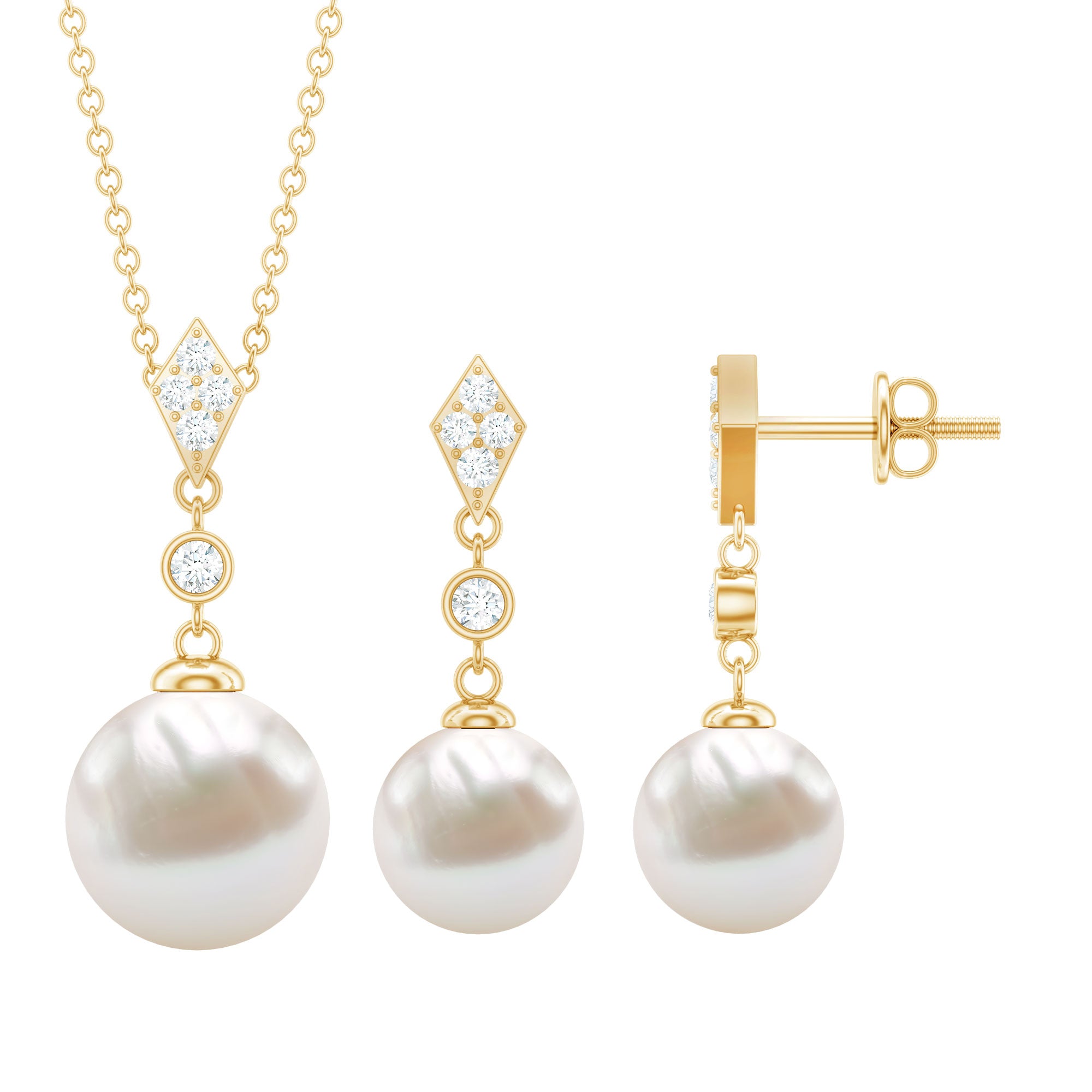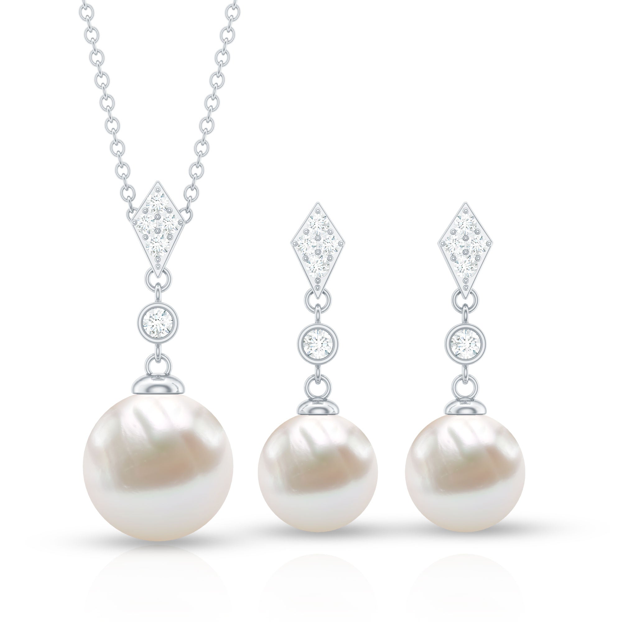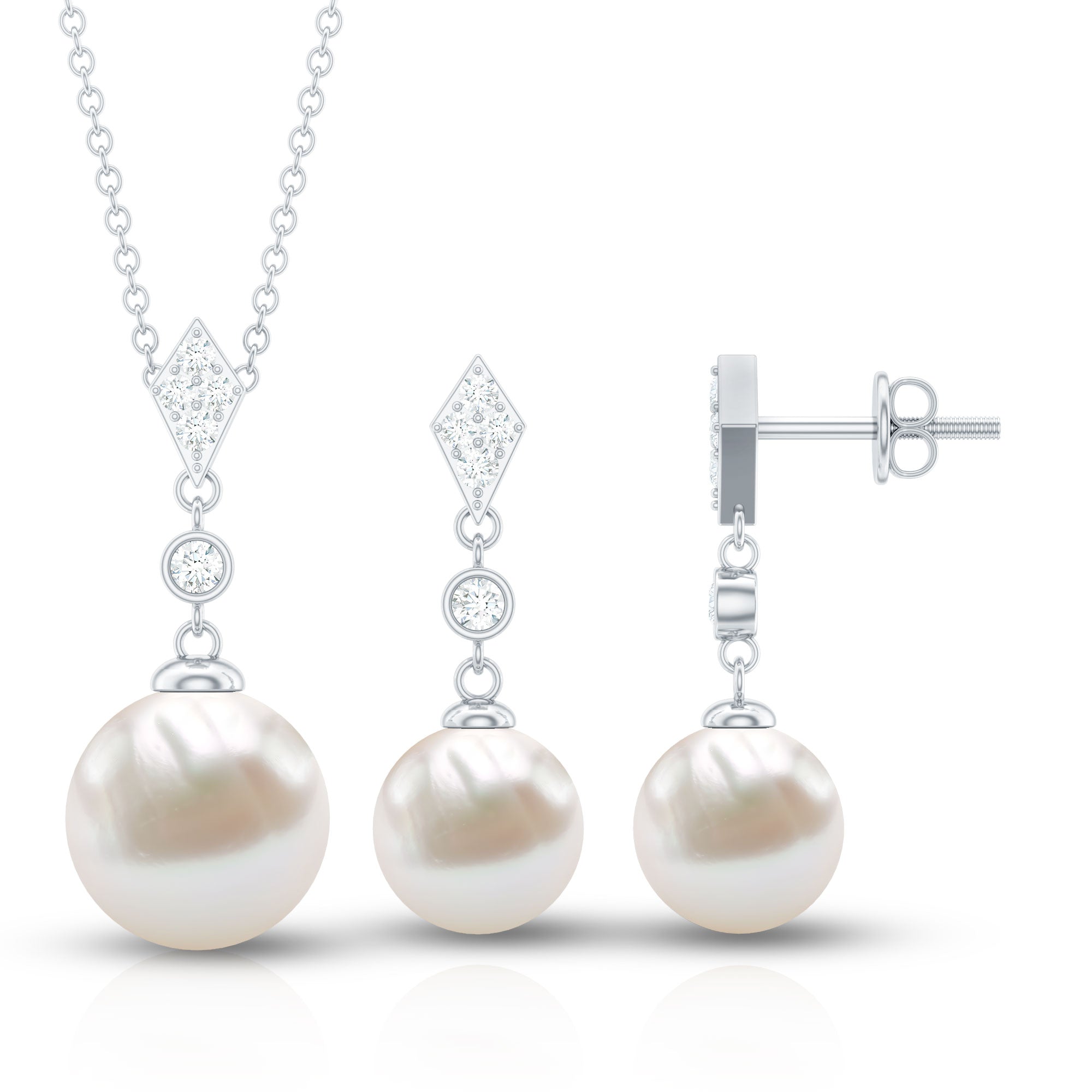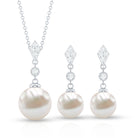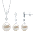Freshwater Pearl Simple Dangle Drop Pendant and Earrings Set with Diamond
