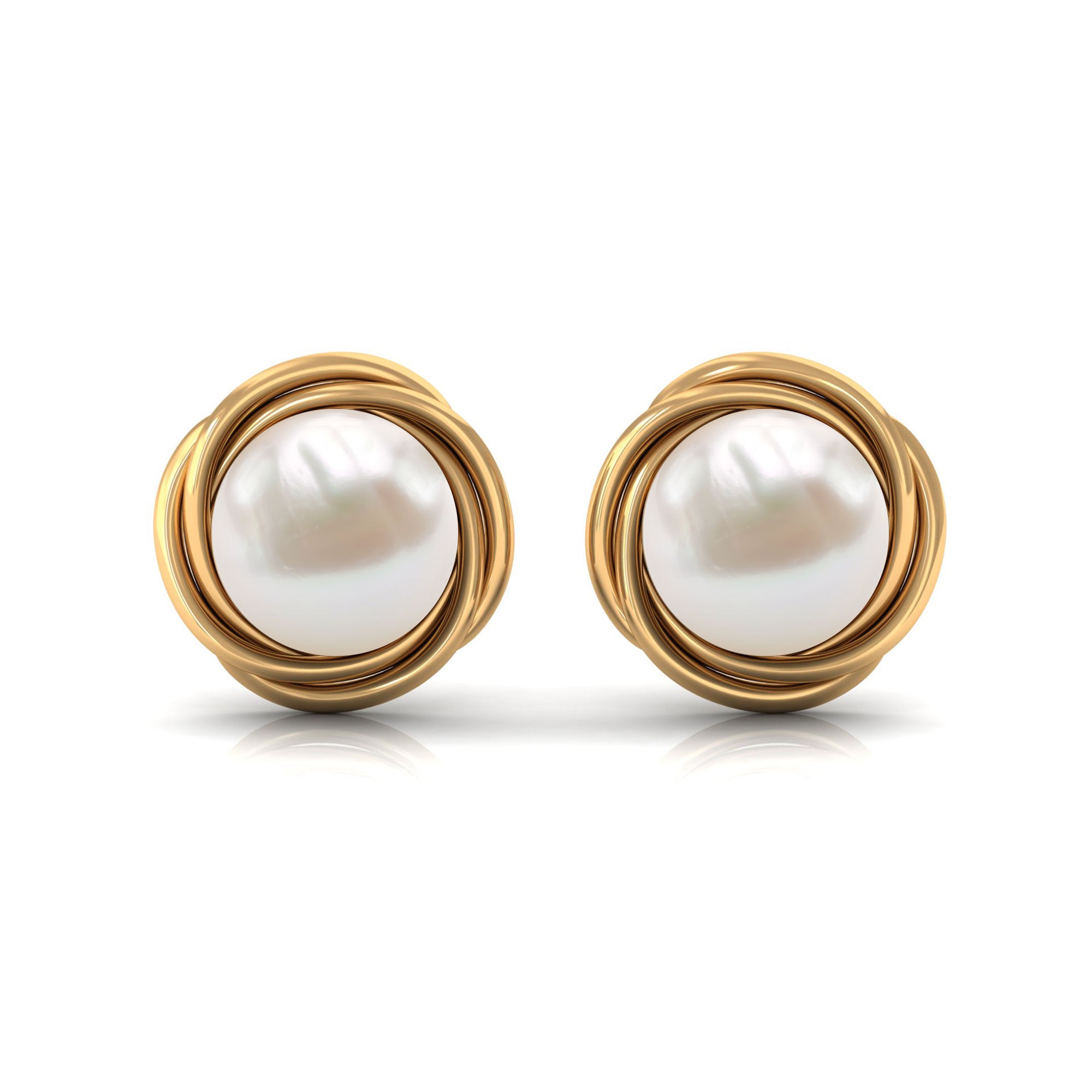 Freshwater Pearl Solitaire and Gold Swirl Stud Earrings