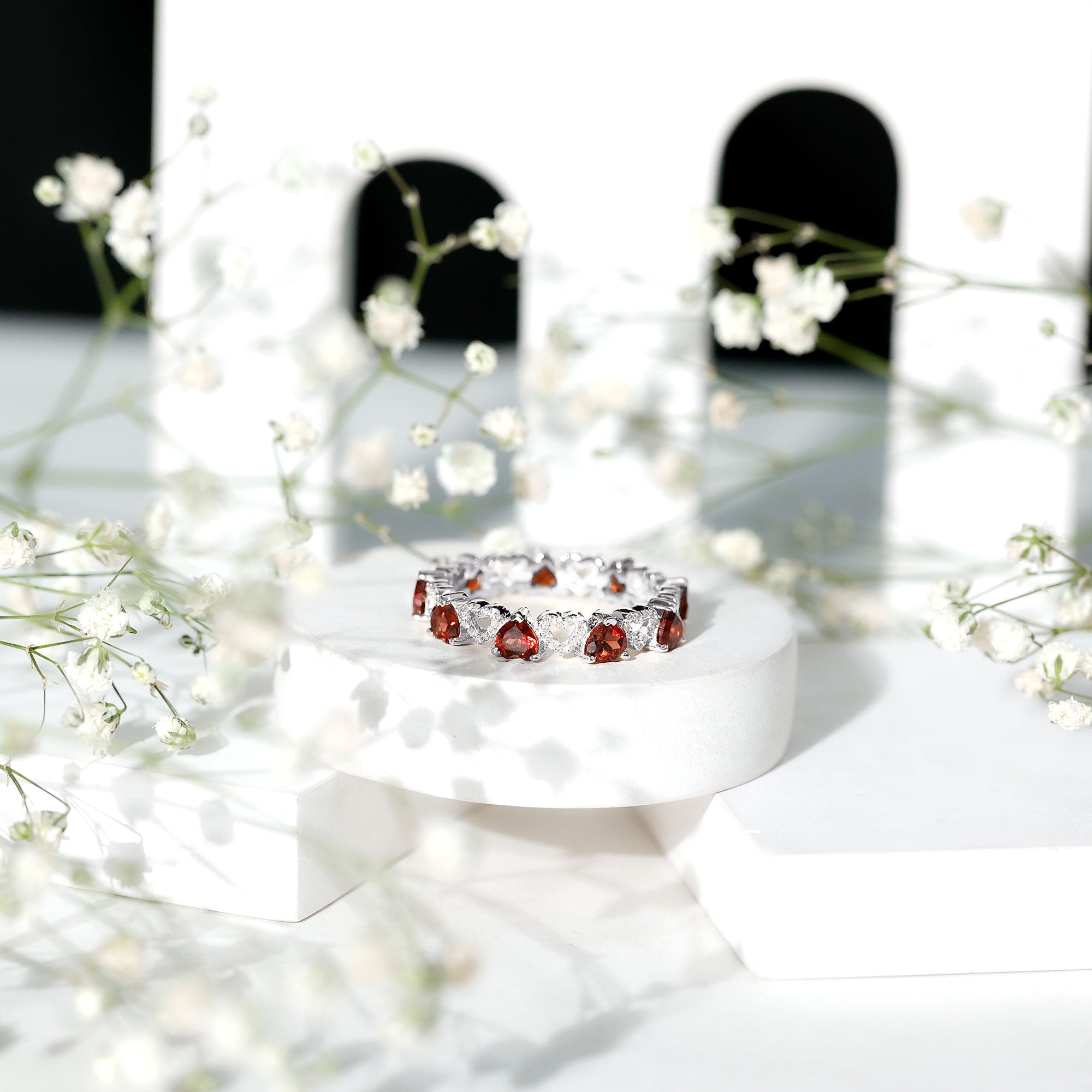 Natural Garnet Diamond Heart Eternity Ring for Anniversary