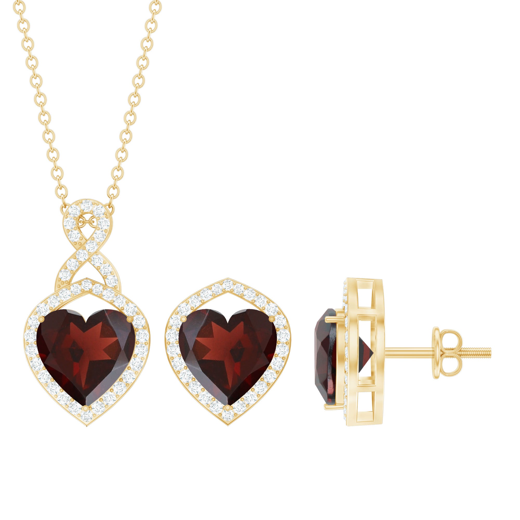 Garnet and Diamond Infinity Heart Jewelry Set