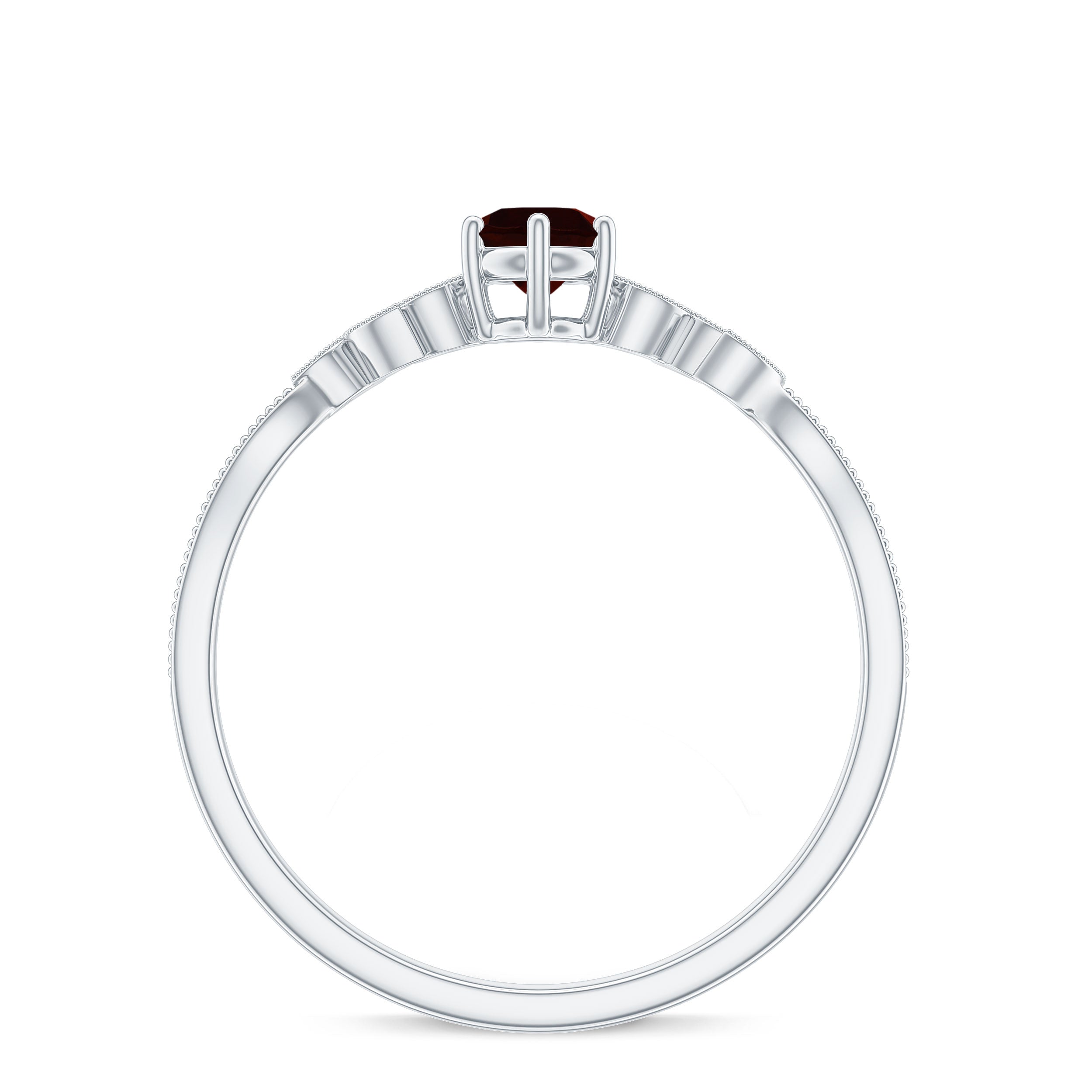 Prepare to dazzle on every occasion with the breathtaking beauty of this mesmerizing Garnet Promise Ring. Delicately crafted, it showcases a captivating arrangement of Round Cut Garnet stones in a prong setting, accentuated by the shimmering presence of Diamond gemstones. The Beaded Leaf design of this ring exudes sophistication and allure, making it the ideal accessory to enhance your ensemble, be it a party or a special event.