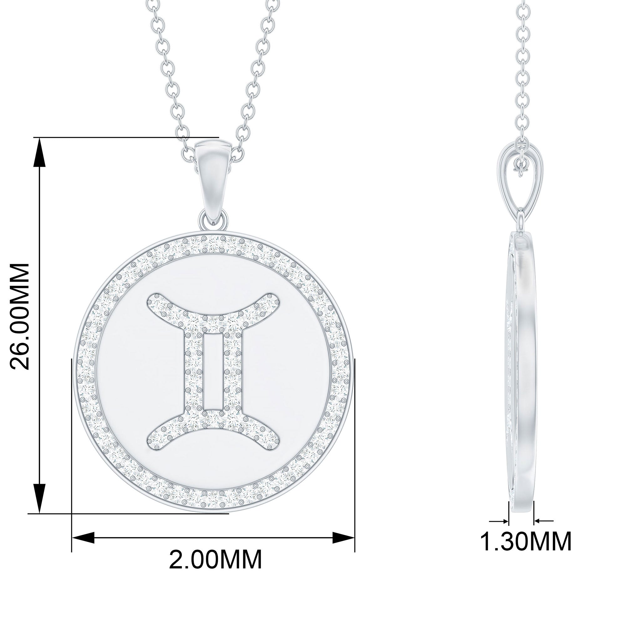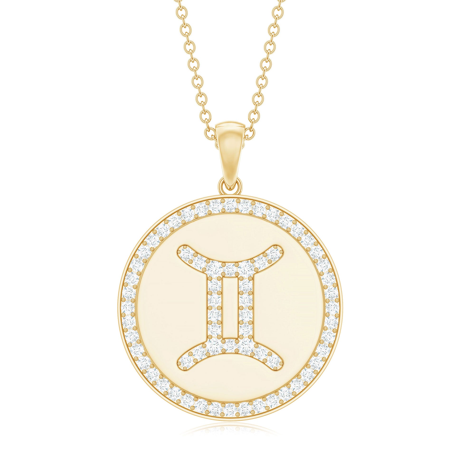Gemini Zodiac Sign Disc Pendant with Pave Set Moissanite