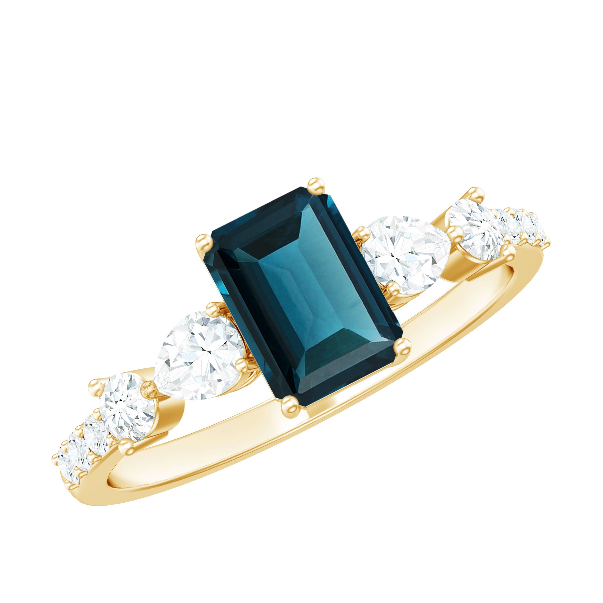 Faq About: Genuine 6x8mm Emerald Cut London Blue Topaz Engagement Ring with Diamond